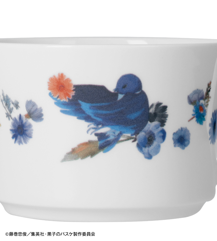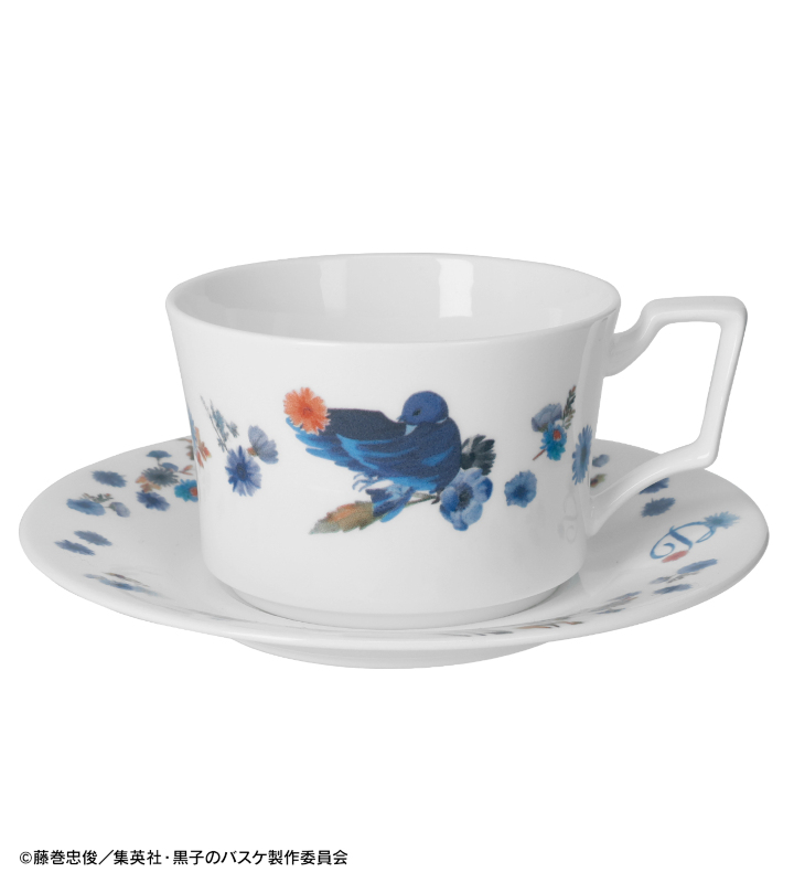 青峰大輝をイメージした鳥と色鮮やかな花が描かれたカップ&ソーサーです。