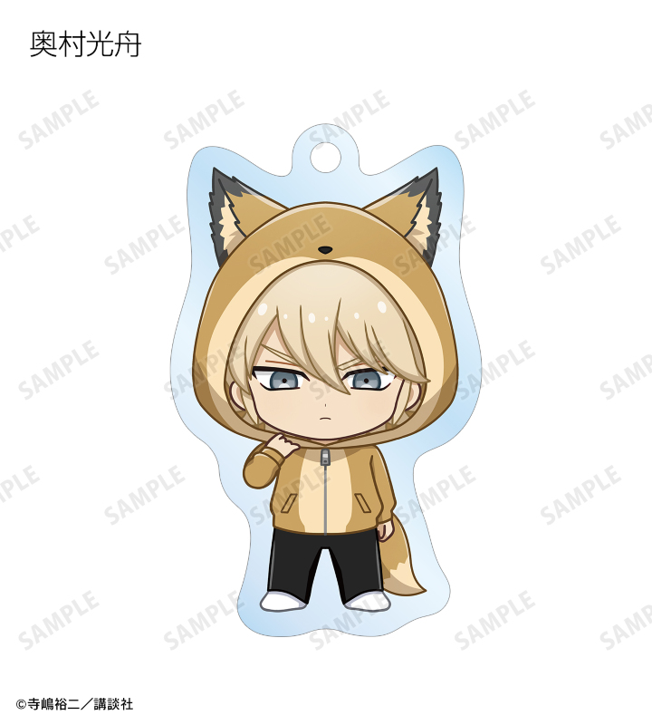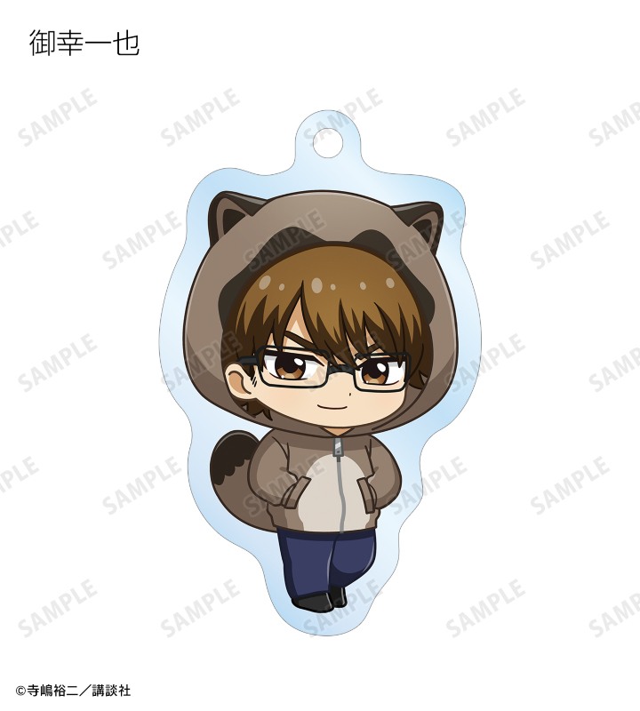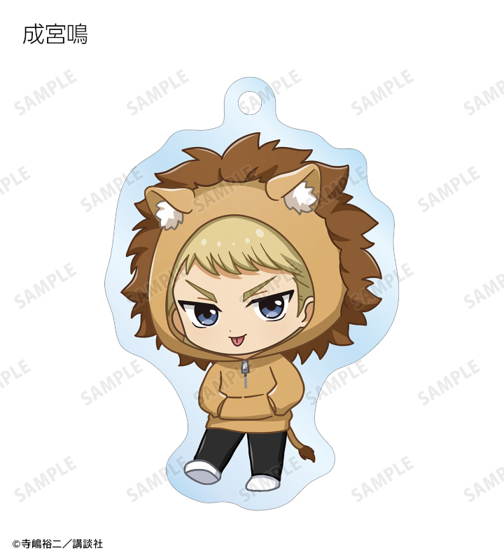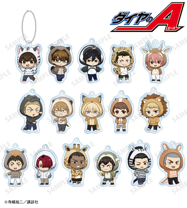 沢村栄純、御幸一也、降谷暁、倉持洋一、小湊春市、金丸信二、東条秀明、奥村光舟、由井薫、成宮鳴、多田野樹、白河勝之、神谷カルロス俊樹、轟雷市、真田俊平、天久光聖の描き起こしちびキャライラストをメインにデザインし、アクリルキーホルダーに仕上げました。