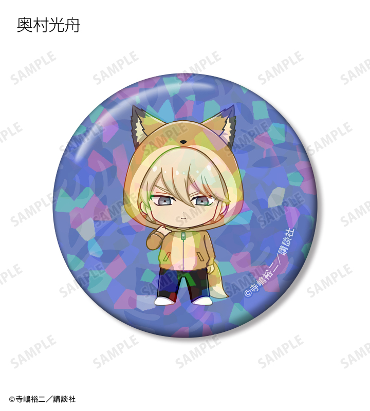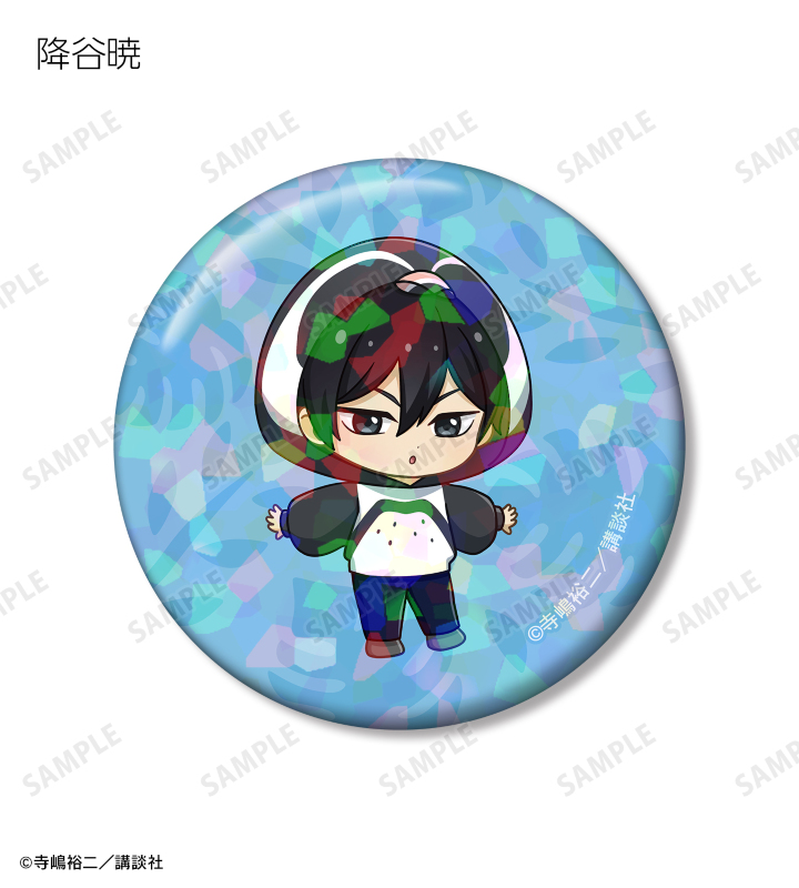 沢村栄純、御幸一也、降谷暁、倉持洋一、小湊春市、金丸信二、東条秀明、奥村光舟、由井薫、成宮鳴、多田野樹、白河勝之、神谷カルロス俊樹、轟雷市、真田俊平、天久光聖の描き起こしちびキャライラストをメインにデザインし、ホログラム加工を施した缶バッジに仕上げました。