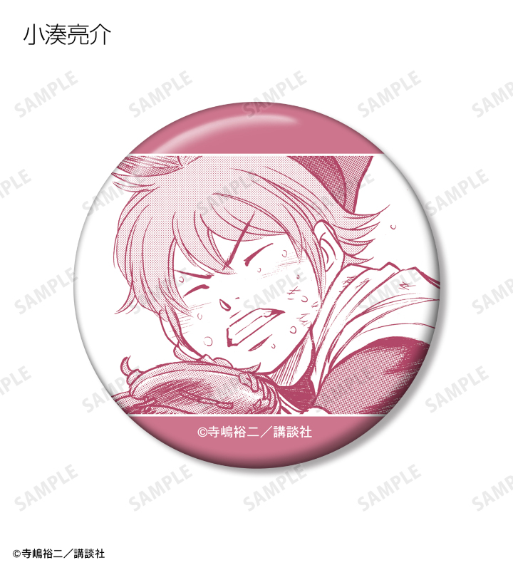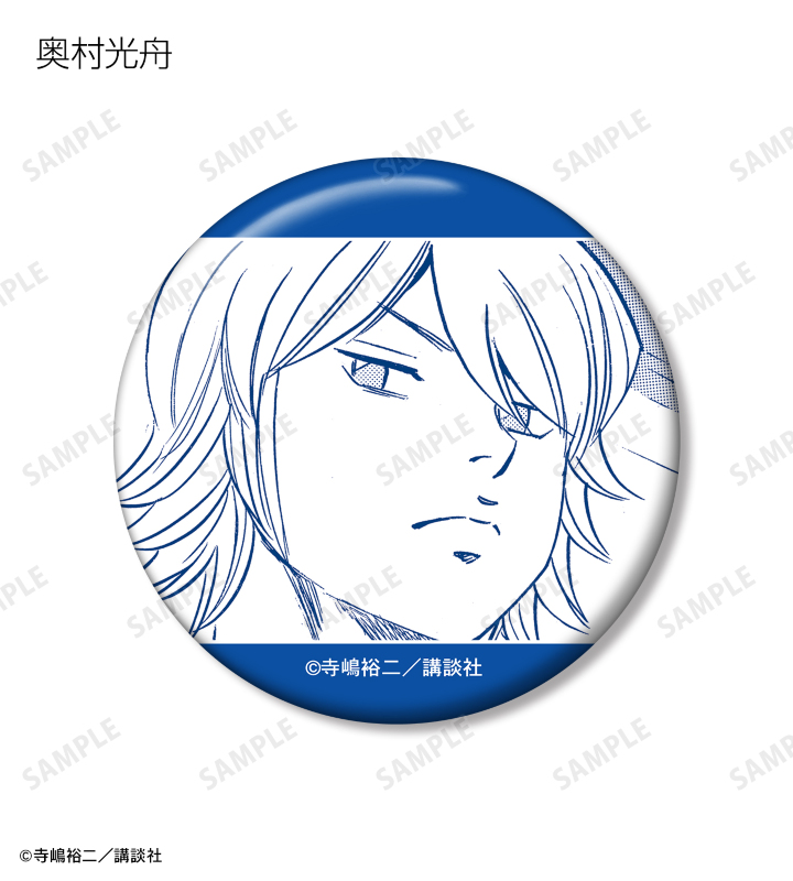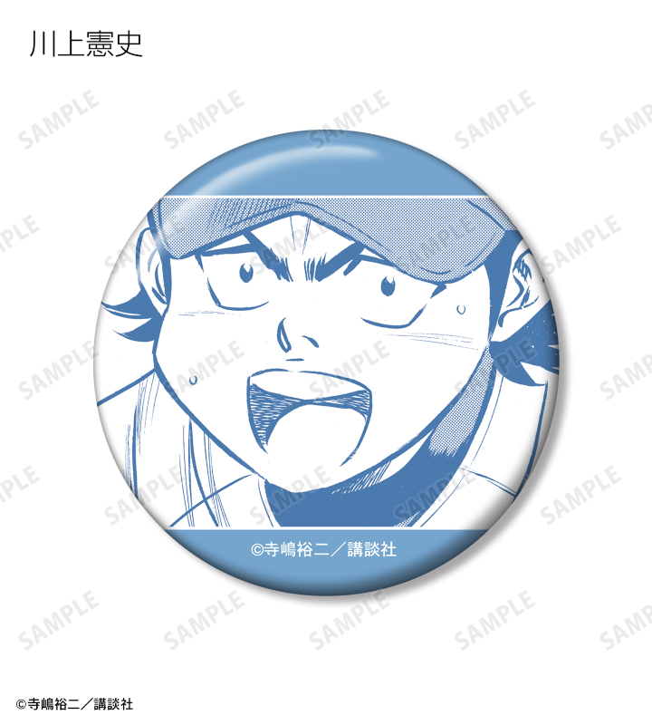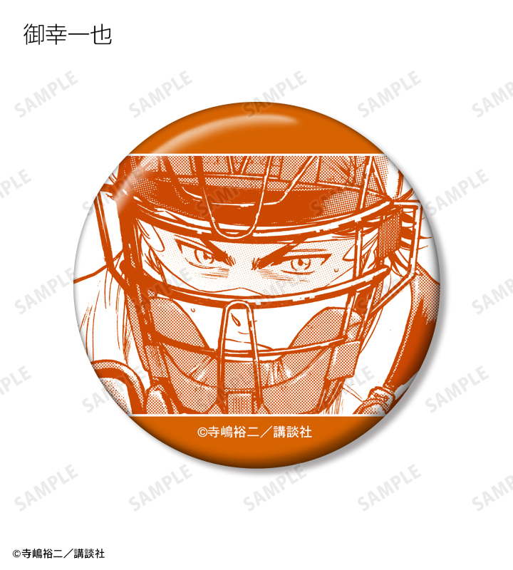 沢村栄純、御幸一也、降谷暁、倉持洋一、小湊春市、川上憲史、金丸信二、東条秀明、結城哲也、伊佐敷純、小湊亮介、滝川・クリス・優、奥村光舟、瀬戸拓馬、結城将司の印象的な原作コマイラストを缶バッジに仕上げました。