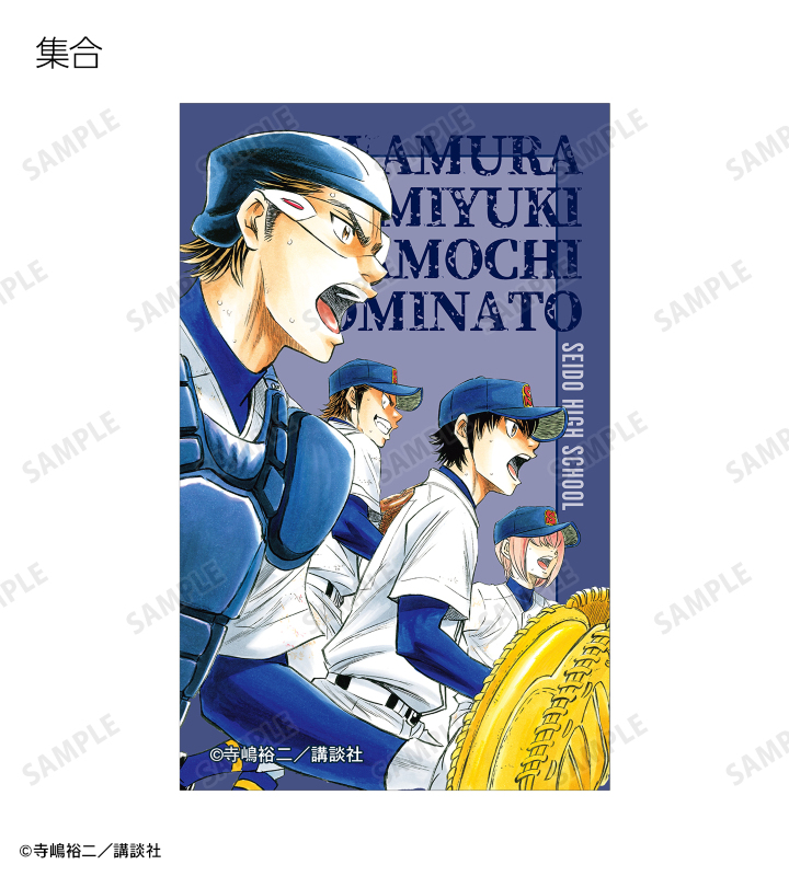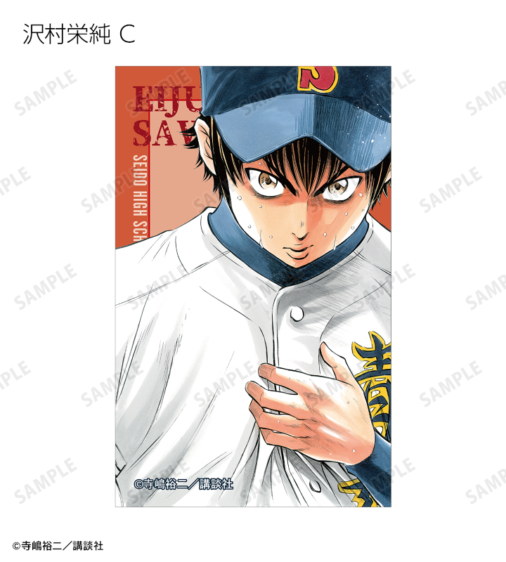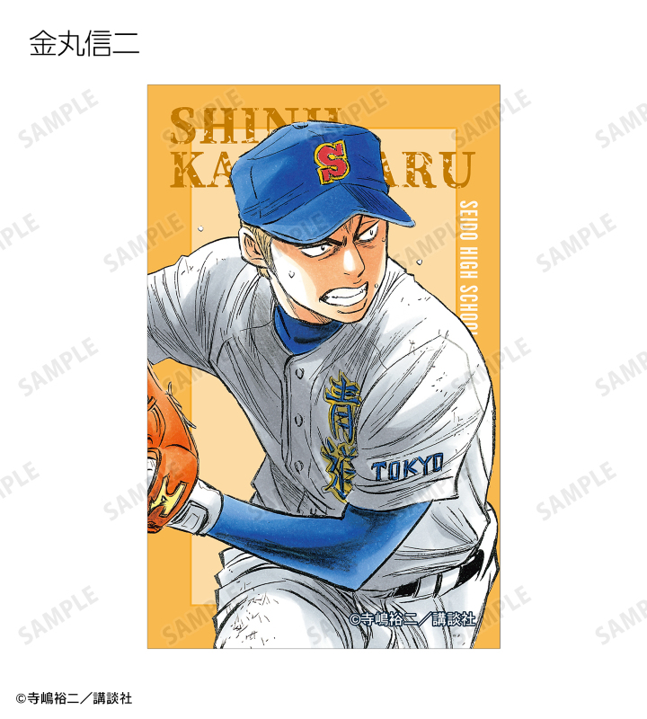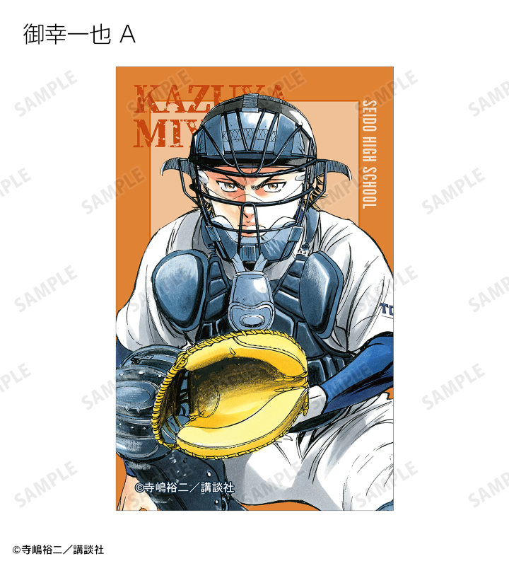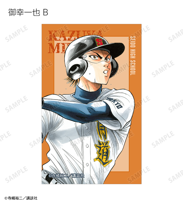 沢村栄純、御幸一也、降谷暁、倉持洋一、小湊春市、川上憲史、金丸信二、東条秀明、成宮鳴、轟雷市、真田俊平、天久光聖の原作表紙イラストをイラストカードに仕上げました。