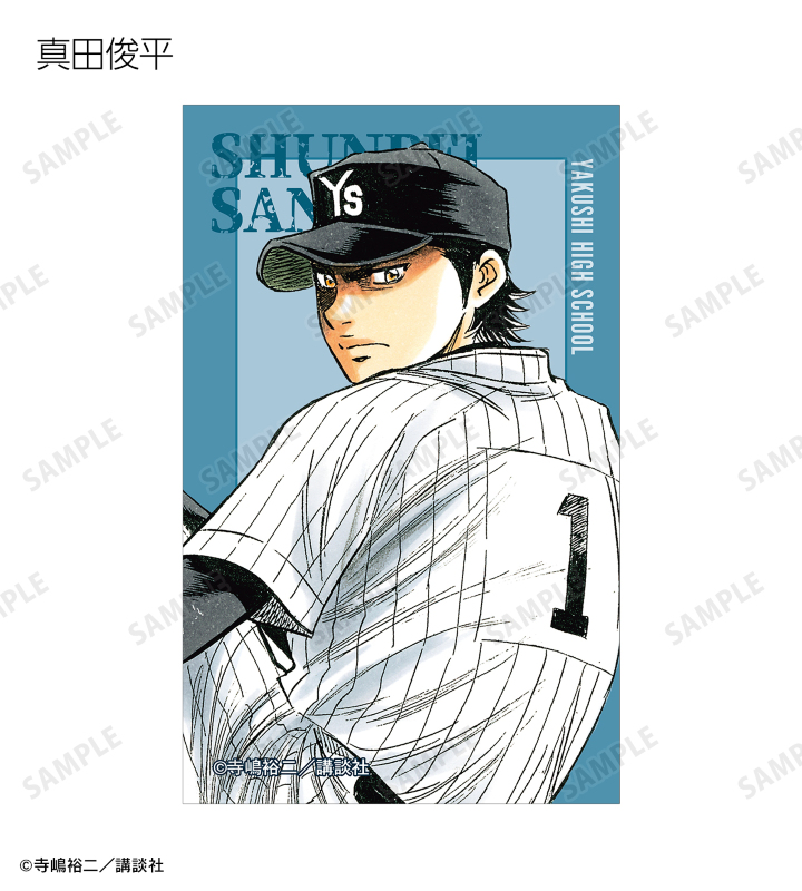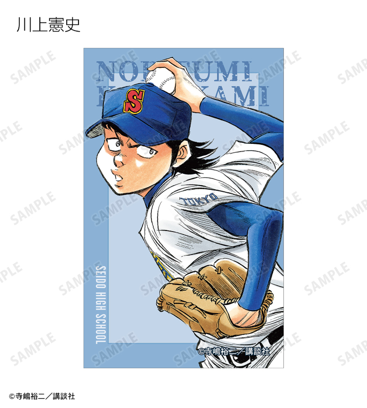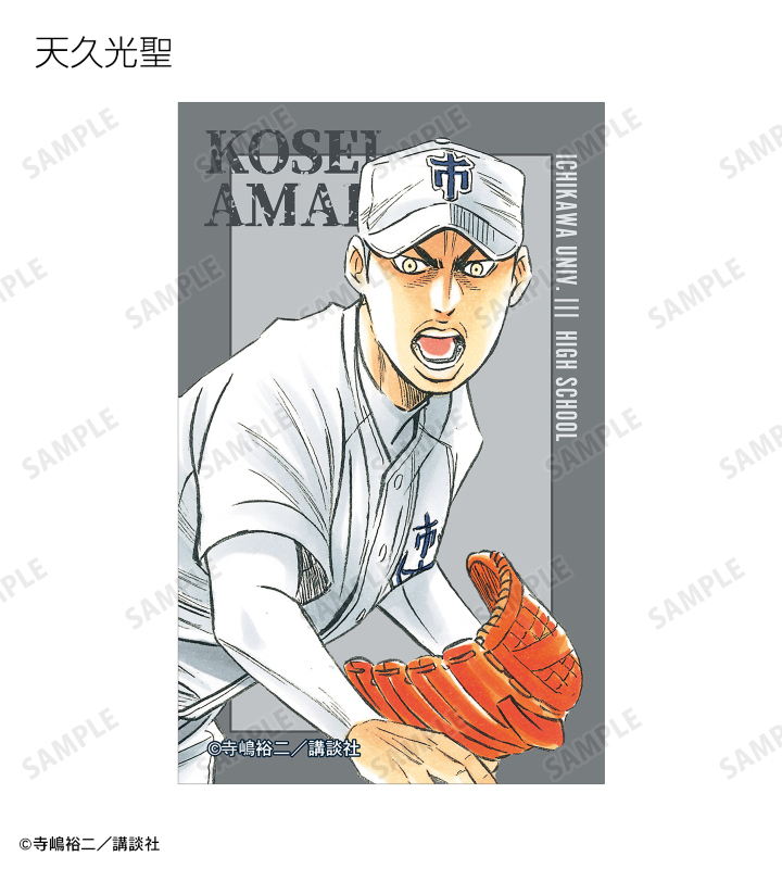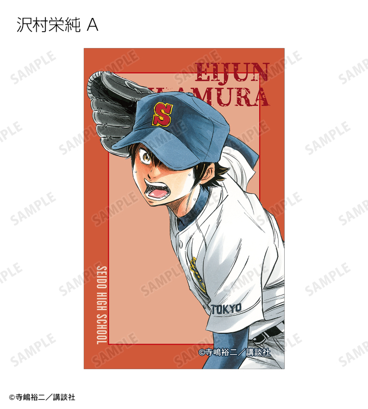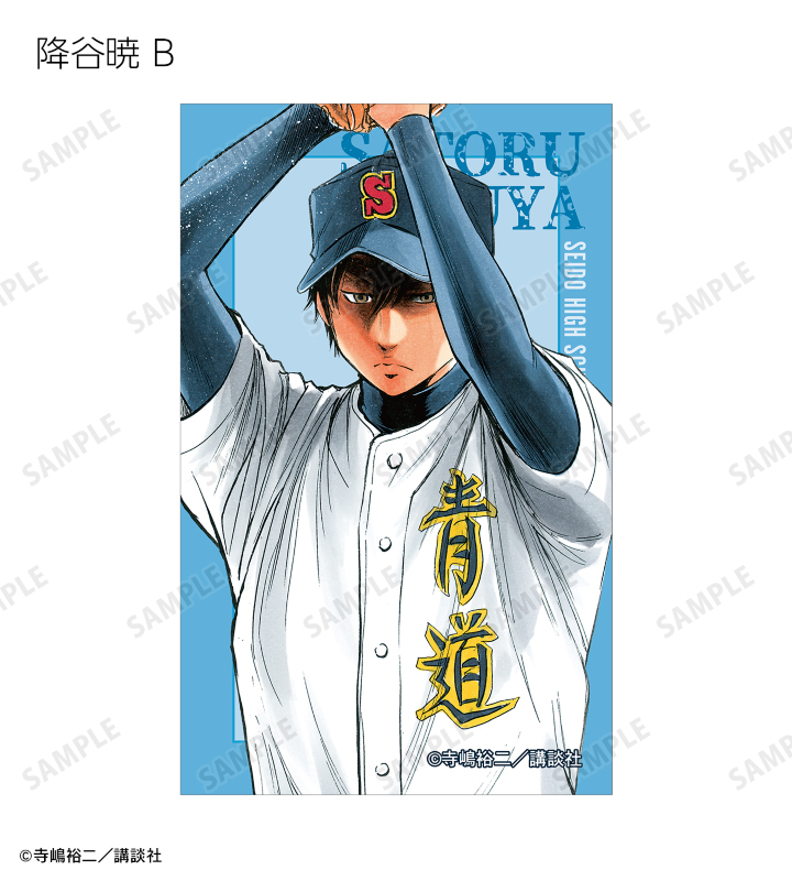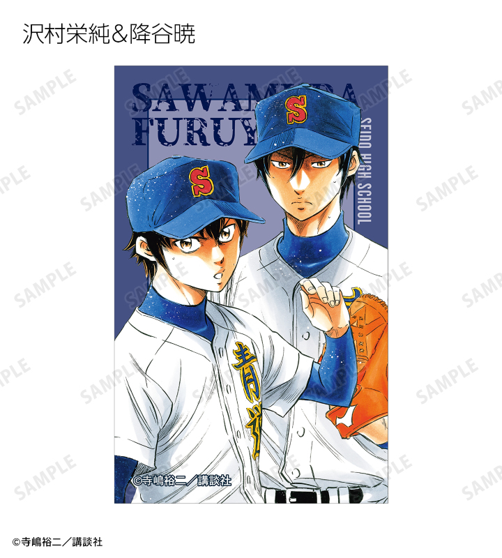 沢村栄純、御幸一也、降谷暁、倉持洋一、小湊春市、川上憲史、金丸信二、東条秀明、成宮鳴、轟雷市、真田俊平、天久光聖の原作表紙イラストをイラストカードに仕上げました。