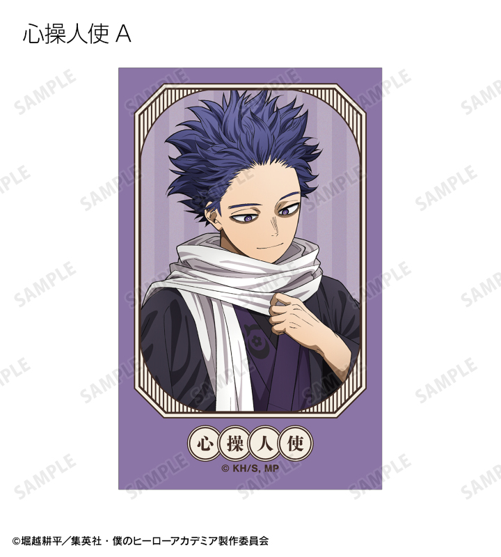 緑谷出久、爆豪勝己、麗日お茶子、轟焦凍、心操人使、相澤消太の描き下ろしビジュアル、キャラクターの名前をビジュアルカードに仕上げました。