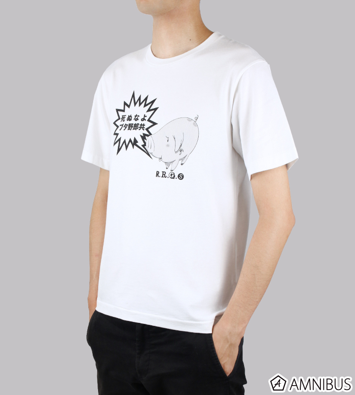 メリオダスの相棒である喋る豚「ホーク」の名言を、ブランドロゴ内にプリントした遊び心溢れる一着です。 ホワイトボディに黒のプリントを施し、モノクロで可愛らしくもクールな印象に仕上げています。