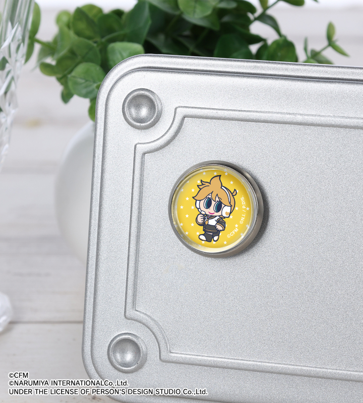 『初音ミク』×「ANGEL BLUE」のコラボレーションアイテム「ANGEL BLUEコラボ 描き起こし 鏡音レン ガラスマグネットピンバッジ」の登場です。