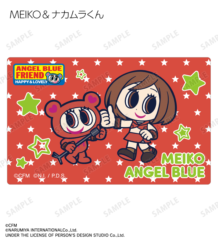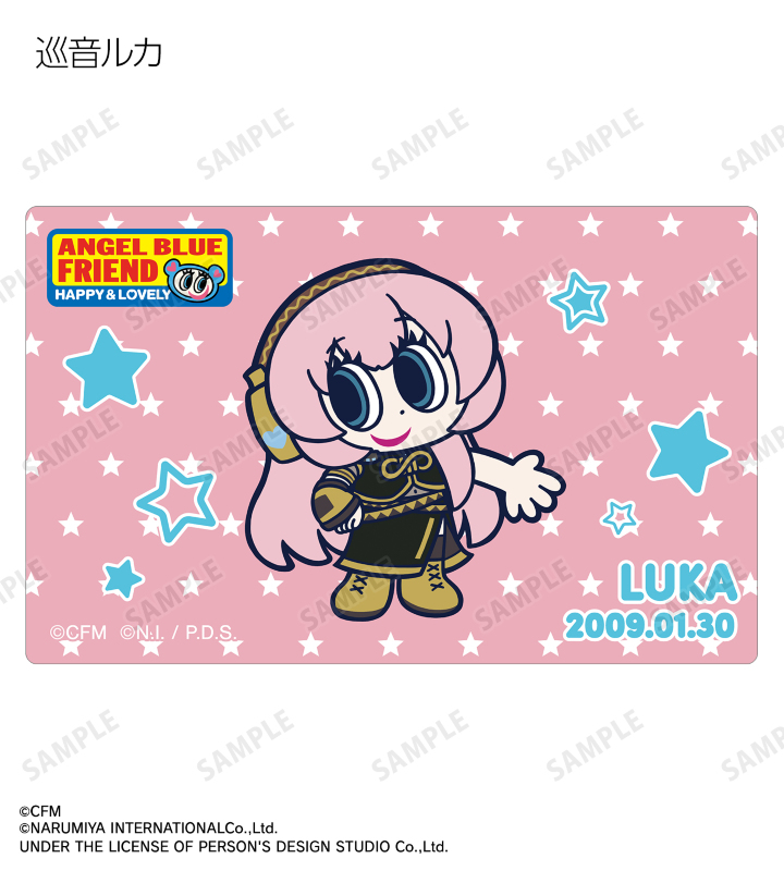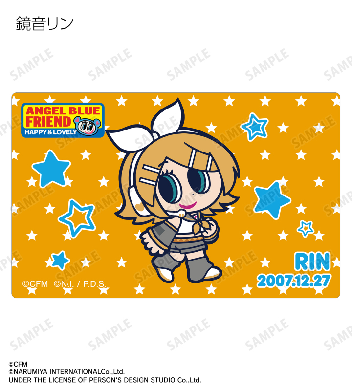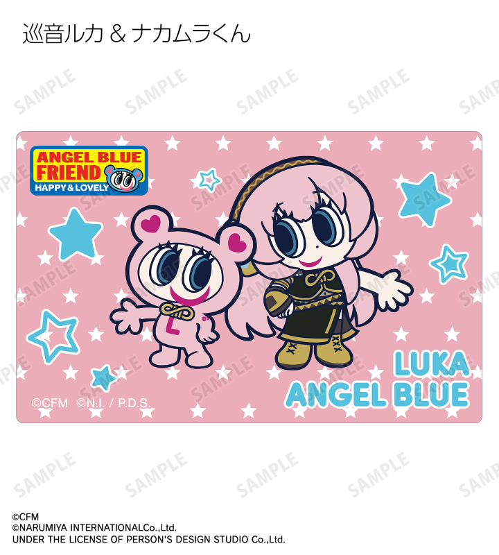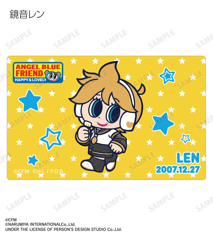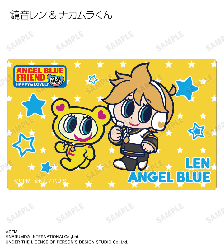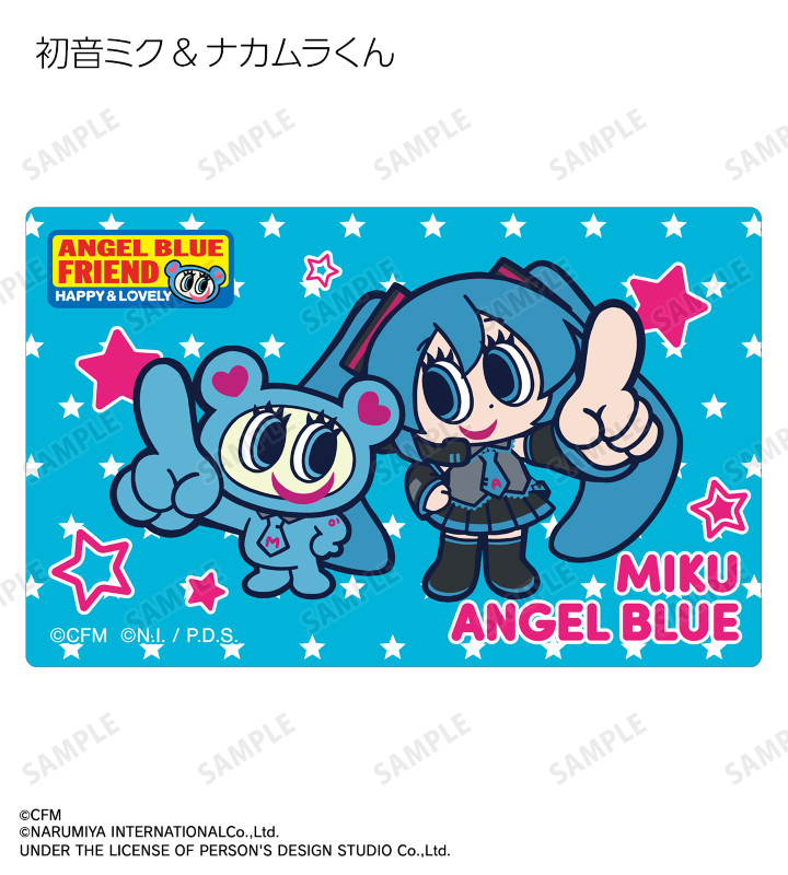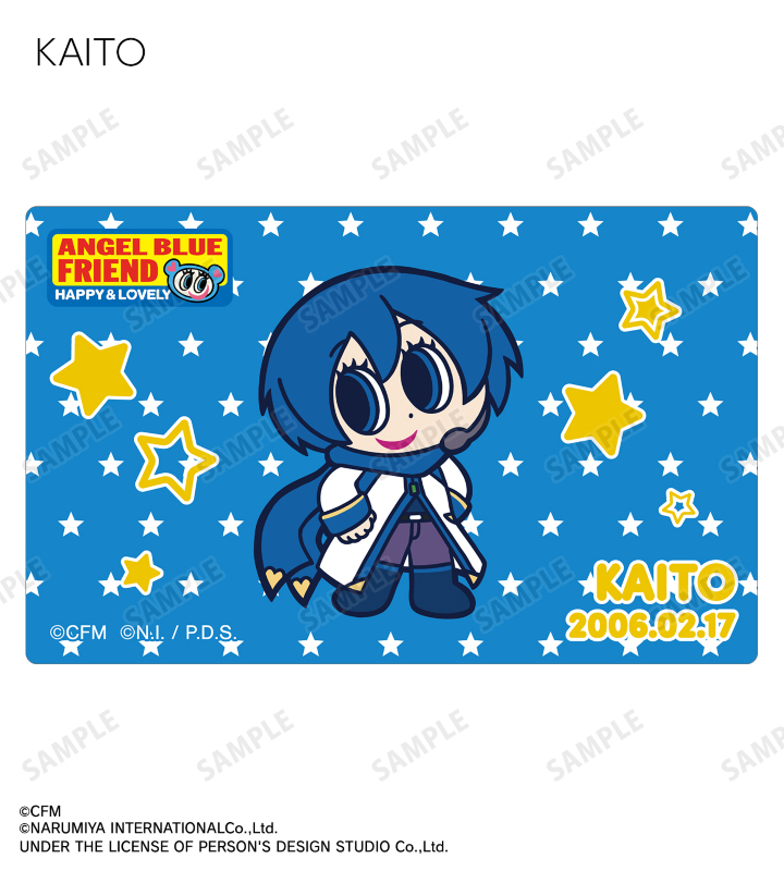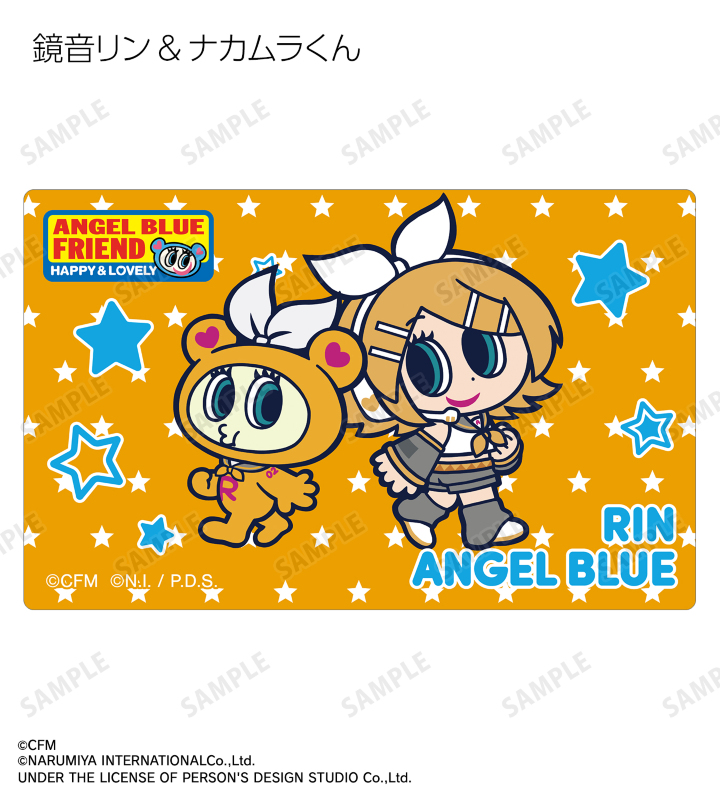 初音ミク、鏡音リン、鏡音レン、巡音ルカ、MEIKO、KAITO、ナカムラくんを描き起こしたANGEL BLUEのコラボイラストを、カードステッカーに仕上げました。