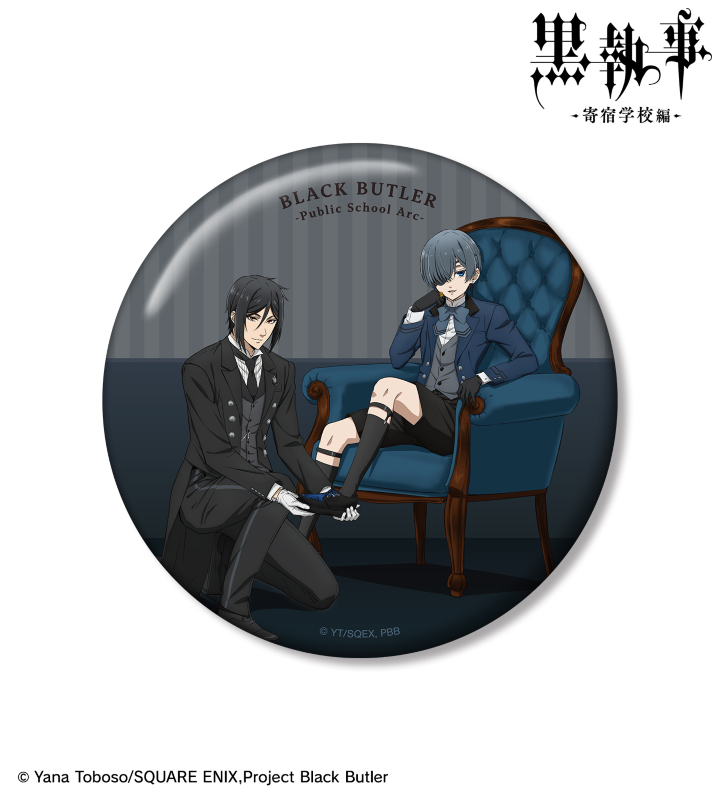 TVアニメ『黒執事 -寄宿学校編-』×「George Cox」のコラボレーションアイテム「描き下ろし セバスチャン&シエル 100mm缶バッジ」の登場です。