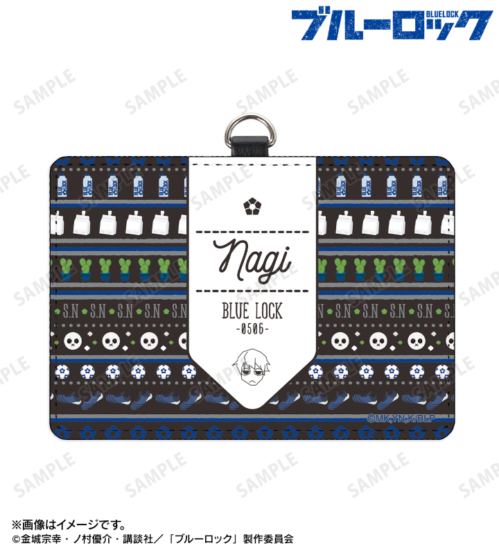 凪 誠士郎のイラスト、イニシャル、誕生日などのキャラクターや作品のモチーフを描き起こし、総柄デザインのネックストラップ付きのパスケースに仕上げました。