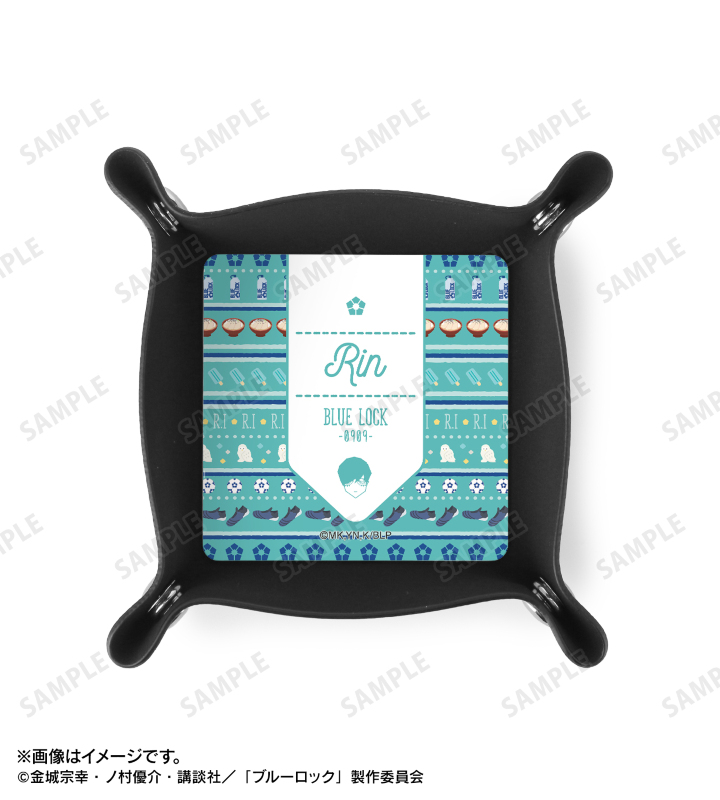 糸師 凛のイラスト、イニシャル、誕生日などのキャラクターや作品のモチーフを描き起こし、総柄デザインのPUレザーマルチトレーに仕上げました。