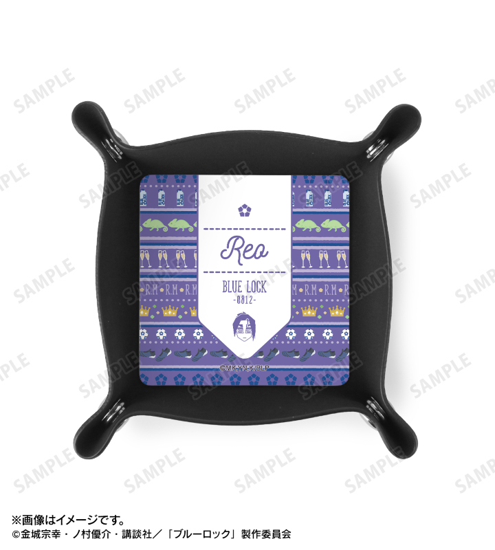 御影 玲王のイラスト、イニシャル、誕生日などのキャラクターや作品のモチーフを描き起こし、総柄デザインのPUレザーマルチトレーに仕上げました。