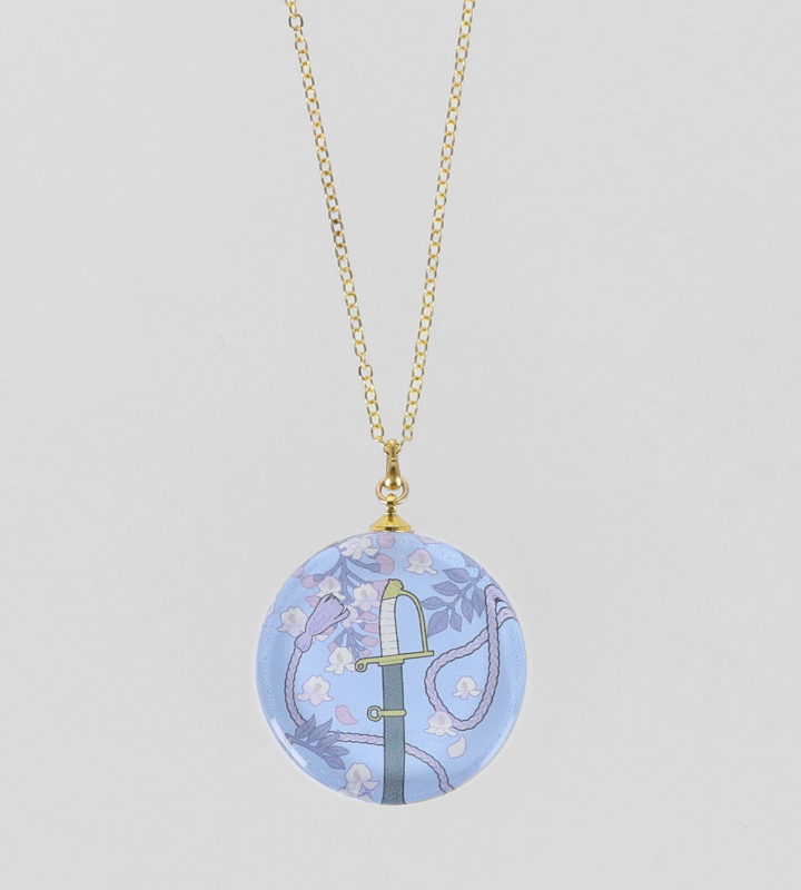 作品の世界観や作中に登場するモチーフを描き起こし、ガラスネックレスに仕上げました。