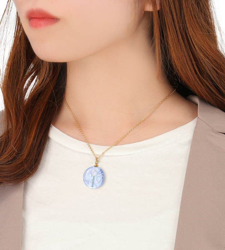 ガラス特有の透明感、高級感があるネックレスです。