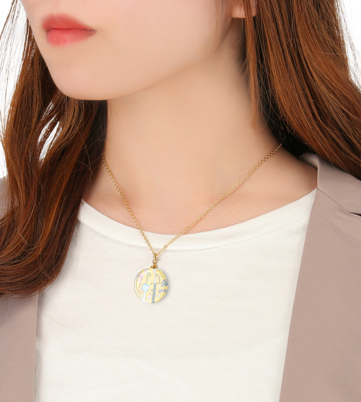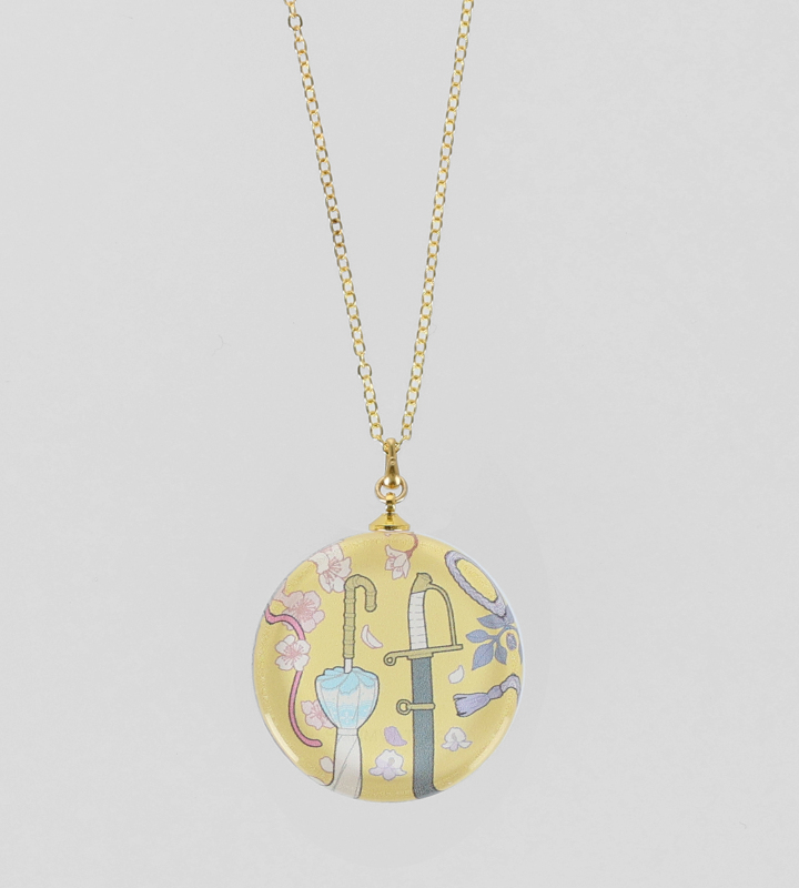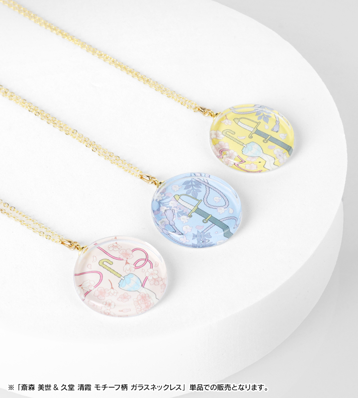 作品の世界観や作中に登場するモチーフを描き起こし、ガラスネックレスに仕上げました。