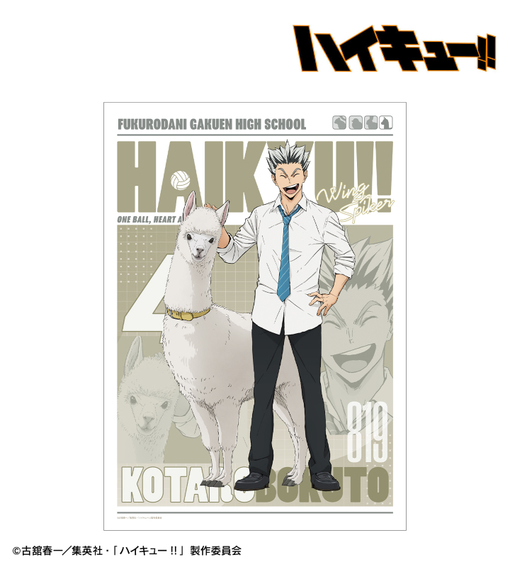 アニメ「ハイキュー!!」×「東武動物公園」のコラボレーションアイテム「描き下ろし 木兎光太郎 動物とのふれあいver. A3マット加工ポスター」の登場です。