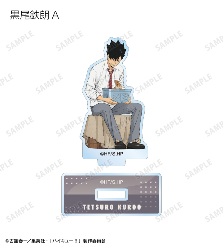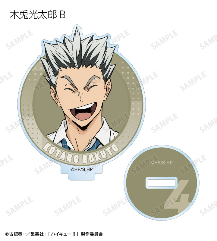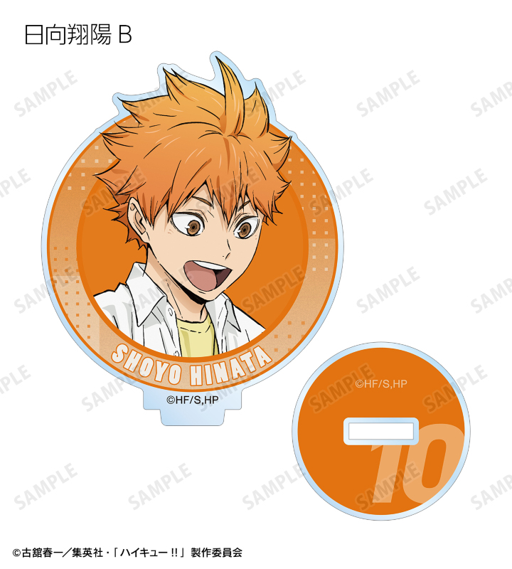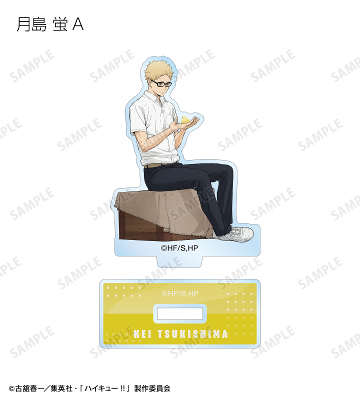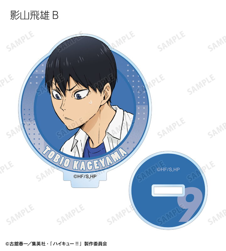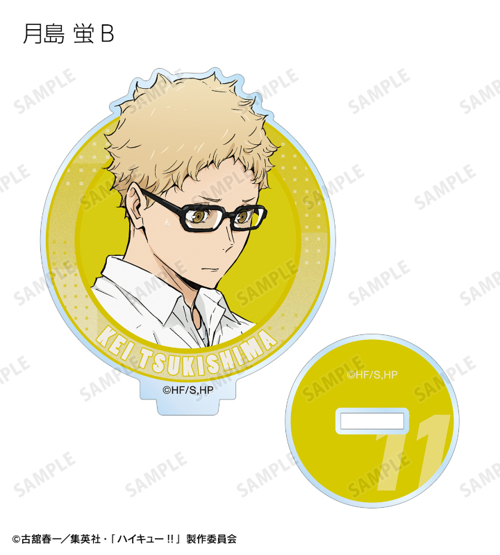 日向翔陽、影山飛雄、月島 蛍、山口 忠、黒尾鉄朗、孤爪研磨、木兎光太郎、赤葦京治の描き下ろしビジュアルをアクリルスタンドに仕上げました。