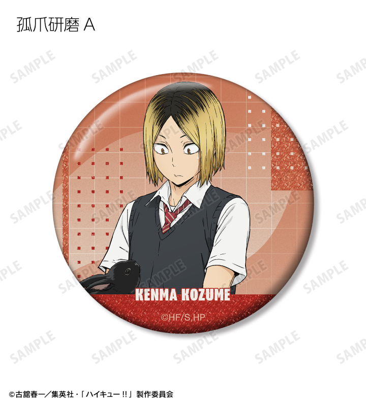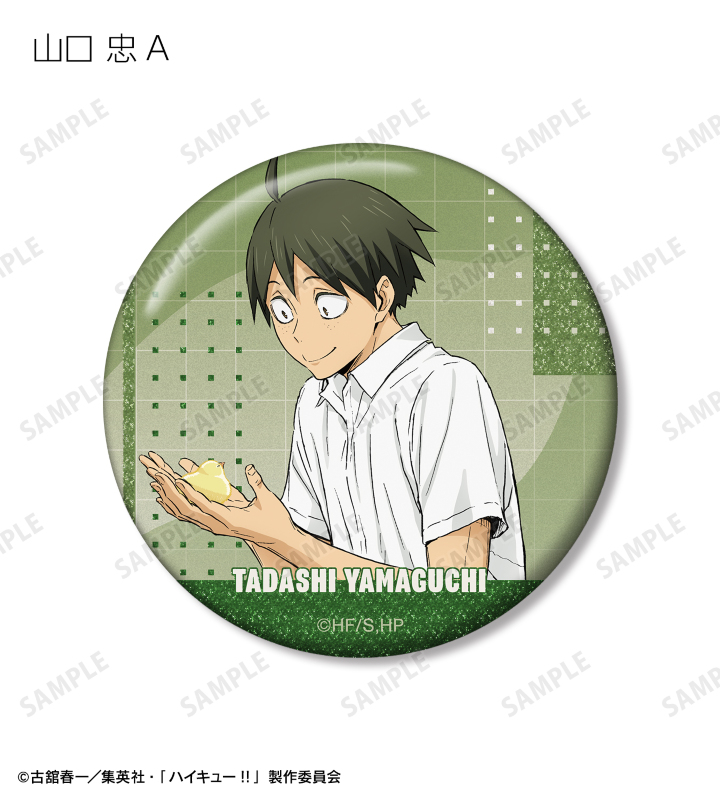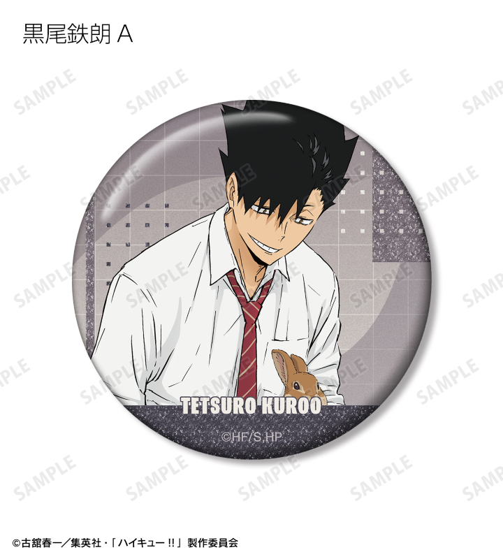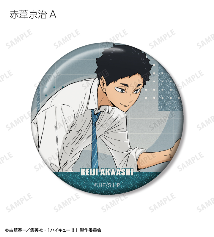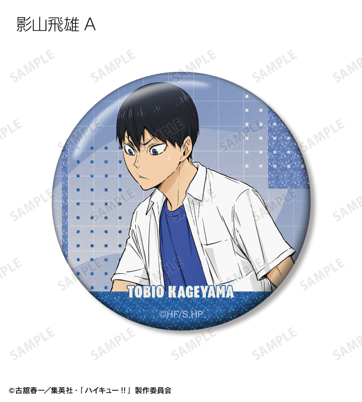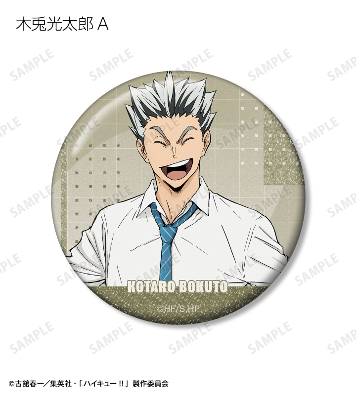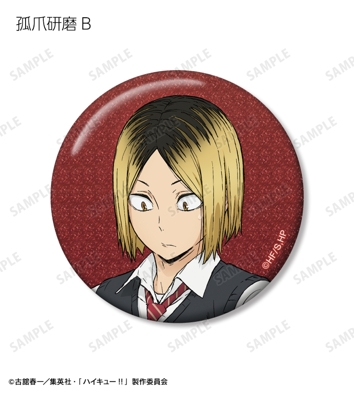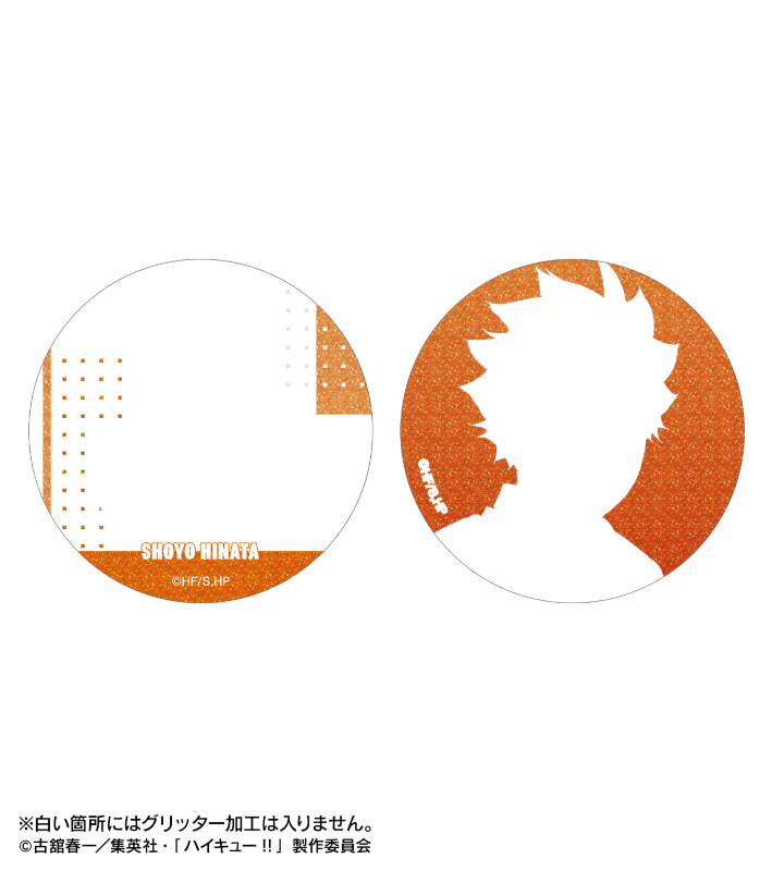 日向翔陽、影山飛雄、月島 蛍、山口 忠、黒尾鉄朗、孤爪研磨、木兎光太郎、赤葦京治の描き下ろしビジュアルをグリッター加工を施した缶バッジに仕上げました。
