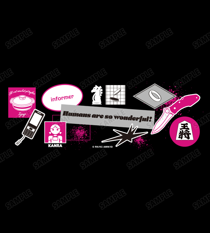 ナイフ、携帯電話、指輪など、折原臨也を象徴するモチーフアイテムと彼の名言をデザインに落とし込み、メガネケースに仕上げました。