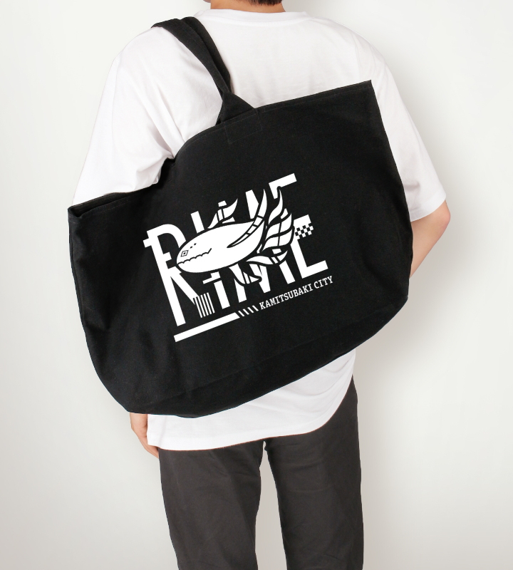 TVアニメ『神椿市建設中。』から日常で使える統一感をテーマにしたデザインシリーズ「ar-Unity」のアイテム「谷置 狸眼 ar-Unity モチーフアイコン BIGジップトートバッグ」の登場です。