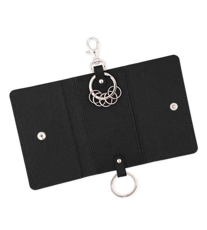 大きいキーリングが2つと小さいキーリングが5つあり、カード収納のできるポケットもついたコンパクトで便利なアイテムです。