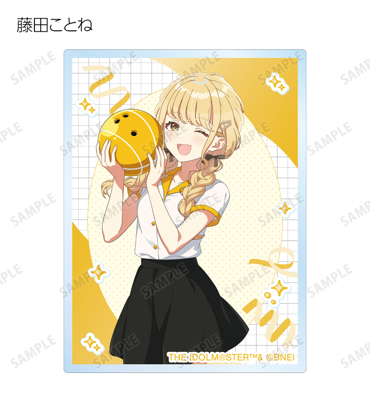 『学園アイドルマスター』×「ROUND1」のコラボレーションアイテム「描き下ろし ボウリングシャツver. トレーディングアクリルカード」の登場です。