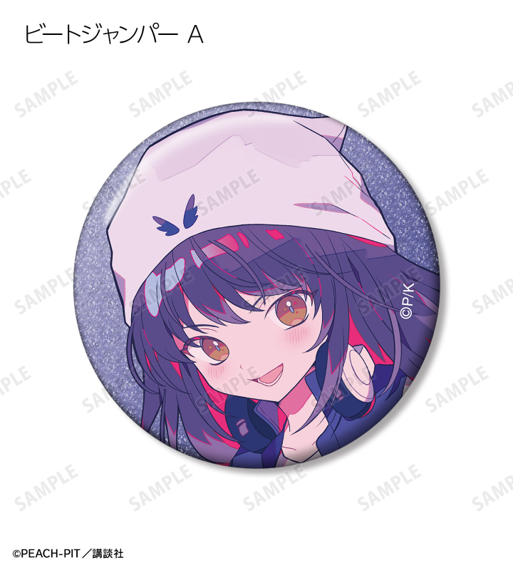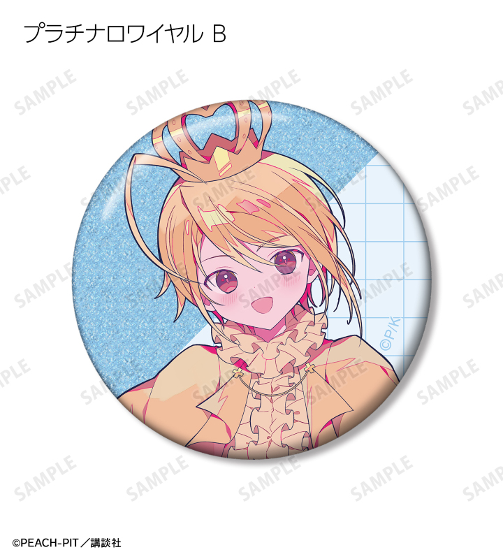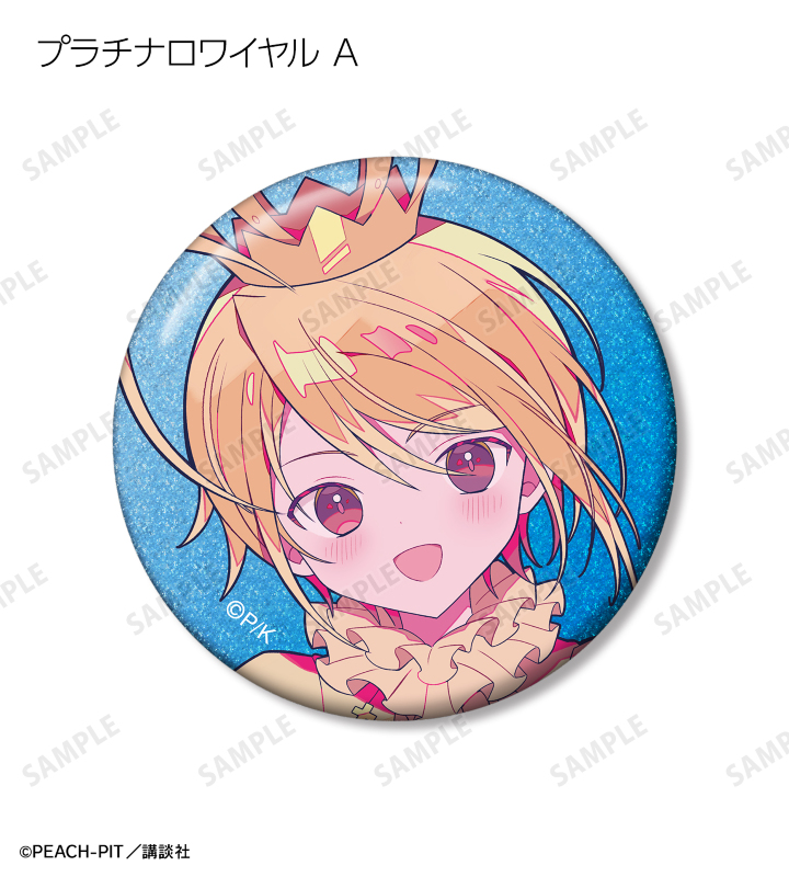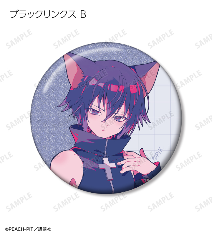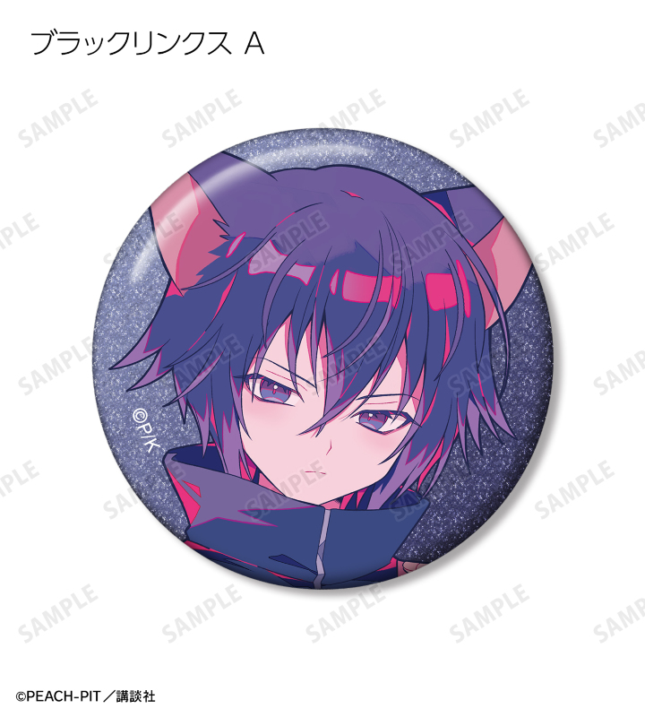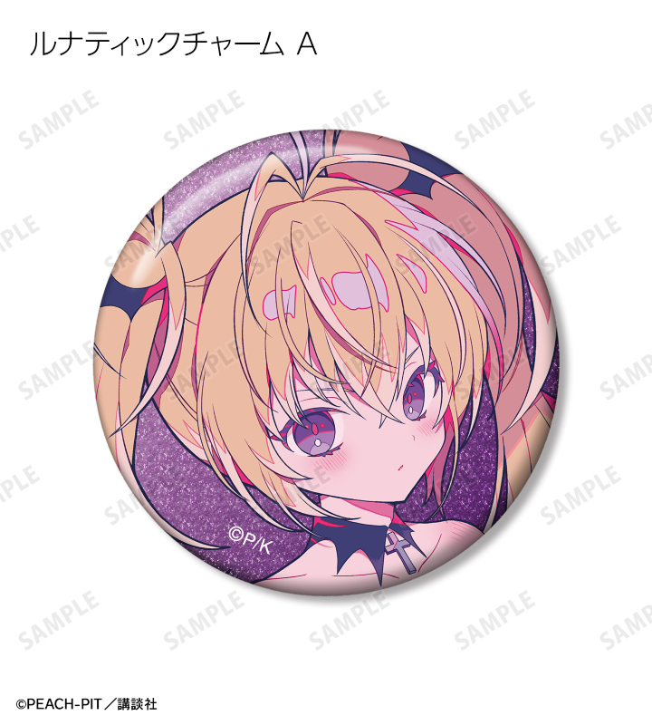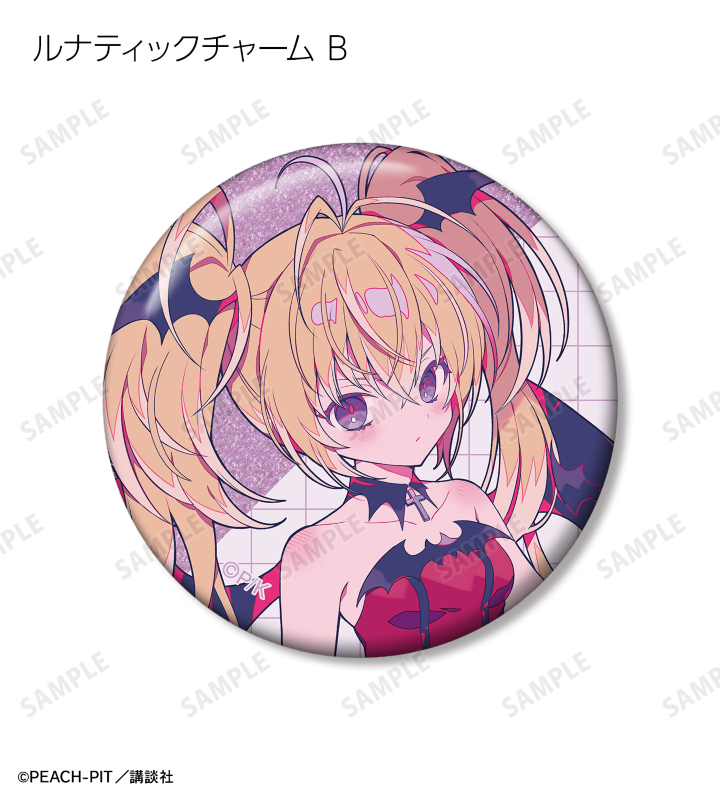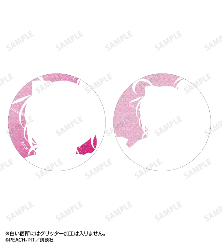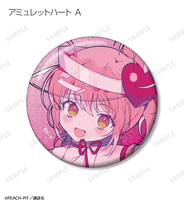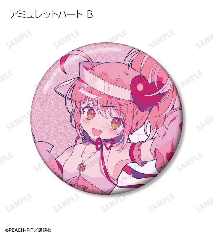 夢ノ内さん描き起こしイラストのアミュレットハート、ブラックリンクス、プラチナロワイヤル、ビートジャンパー、ルナティックチャームをグリッター加工を施した缶バッジに仕上げました。