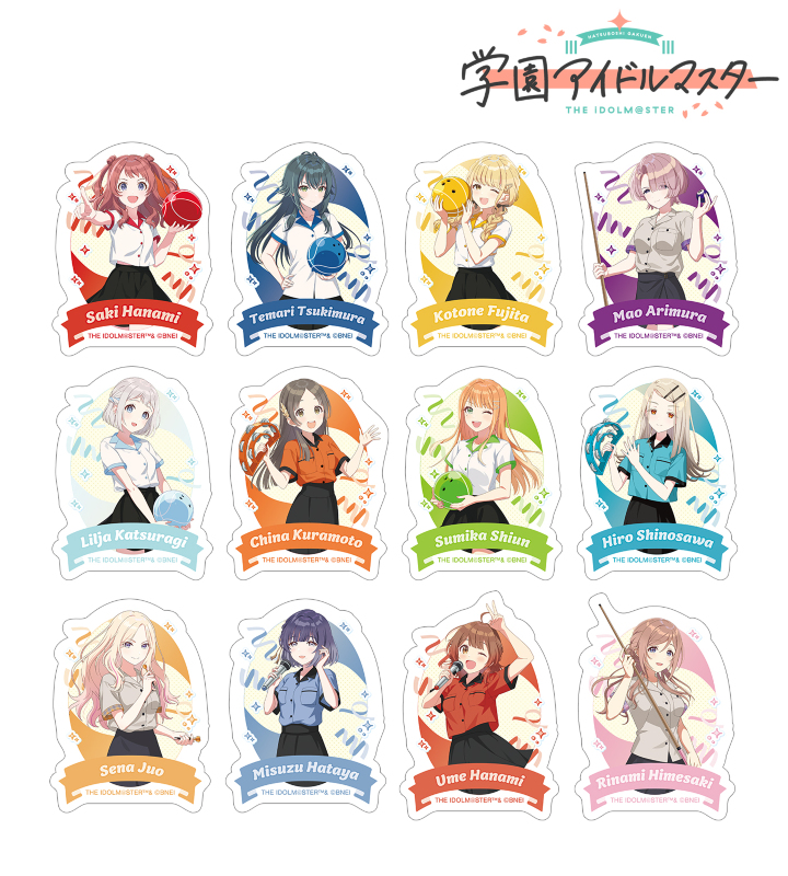 花海咲季、月村手毬、藤田ことね、有村麻央、葛城リーリヤ、倉本千奈、紫雲清夏、篠澤 広、十王星南、秦谷美鈴、花海佑芽、姫崎莉波の描き下ろしイラストをダイカットのステッカーに仕上げました。