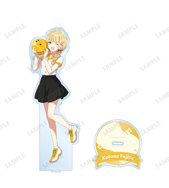『学園アイドルマスター』×「ROUND1」のコラボレーションアイテム「描き下ろし 藤田ことね ボウリングシャツver. 特大アクリルスタンド」の登場です。