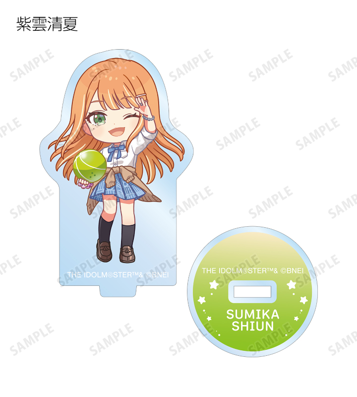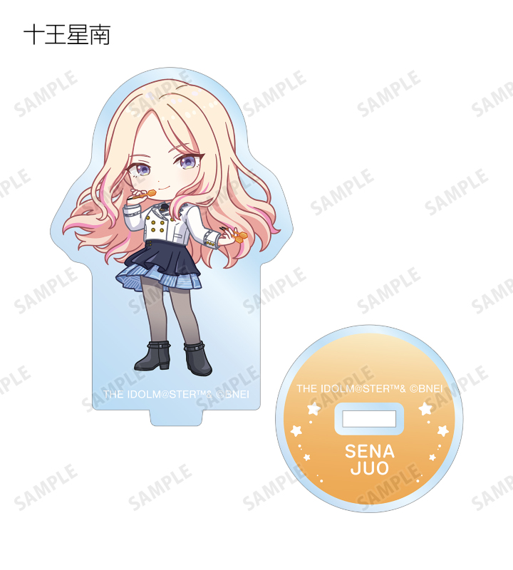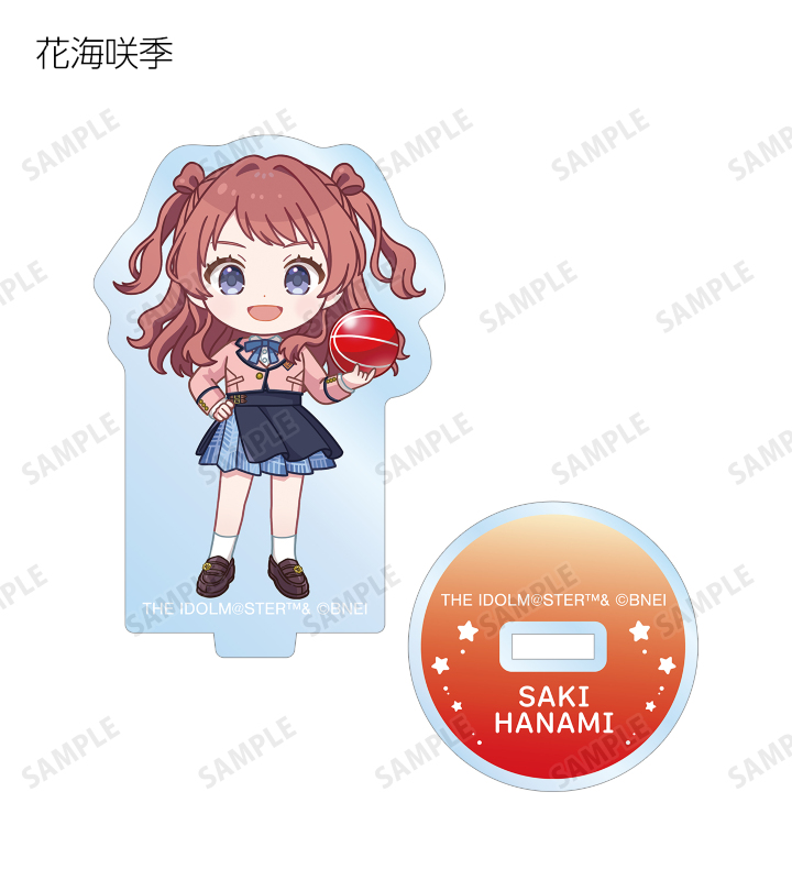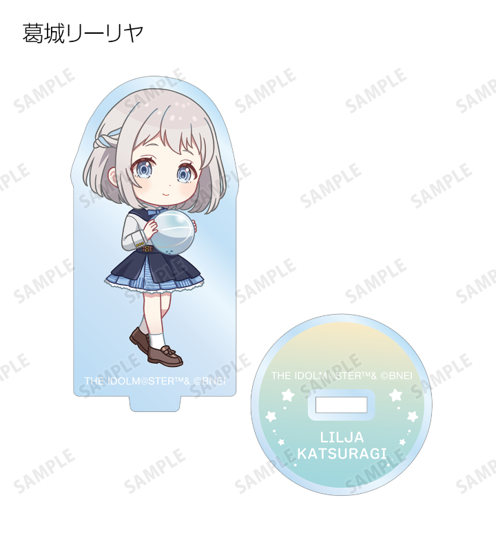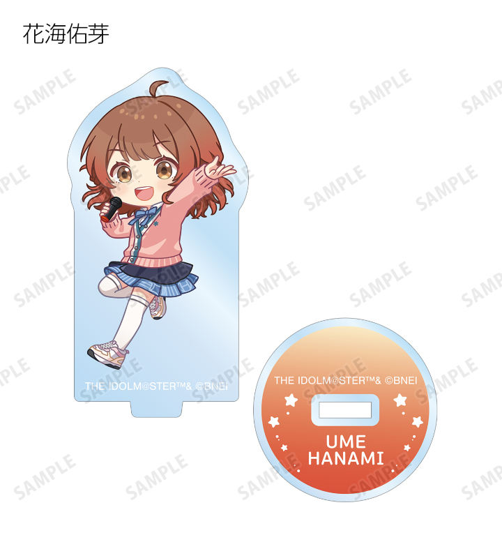 花海咲季、月村手毬、藤田ことね、有村麻央、葛城リーリヤ、倉本千奈、紫雲清夏、篠澤 広、十王星南、秦谷美鈴、花海佑芽、姫崎莉波の描き起こしちびキャライラストをメインにデザインし、アクリルスタンドに仕上げました。