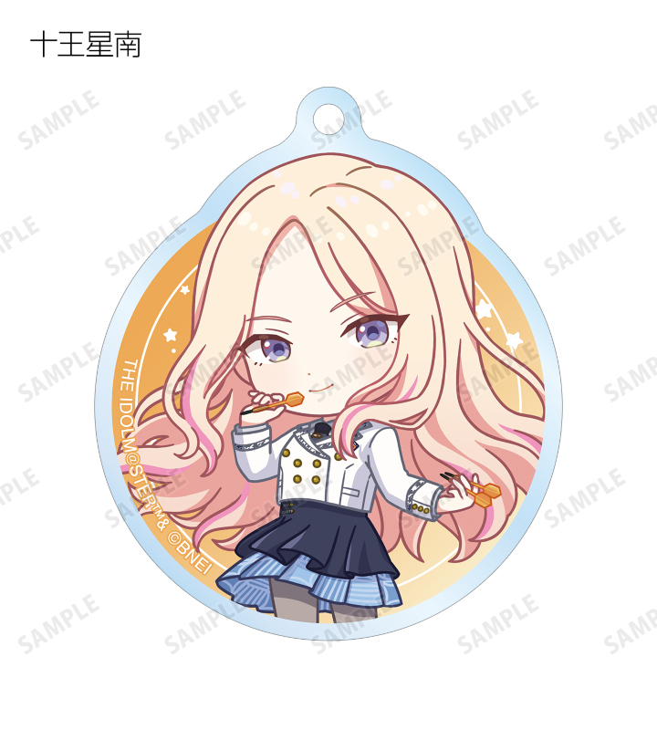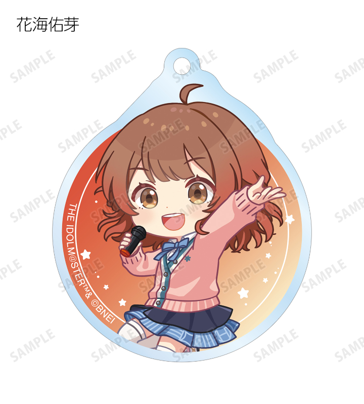 花海咲季、月村手毬、藤田ことね、有村麻央、葛城リーリヤ、倉本千奈、紫雲清夏、篠澤 広、十王星南、秦谷美鈴、花海佑芽、姫崎莉波の描き起こしちびキャライラストをメインにデザインし、アクリルキーホルダーに仕上げました。
