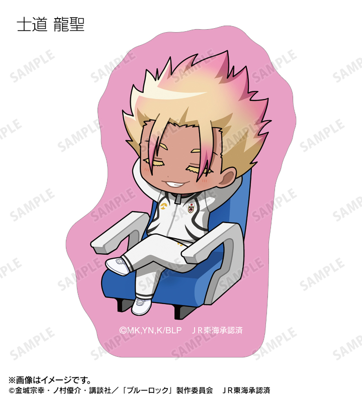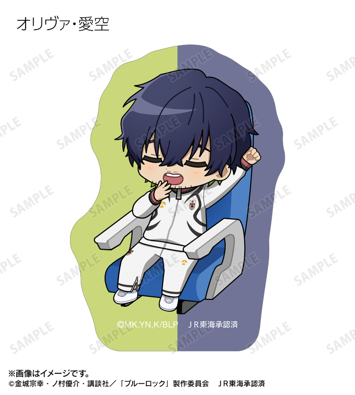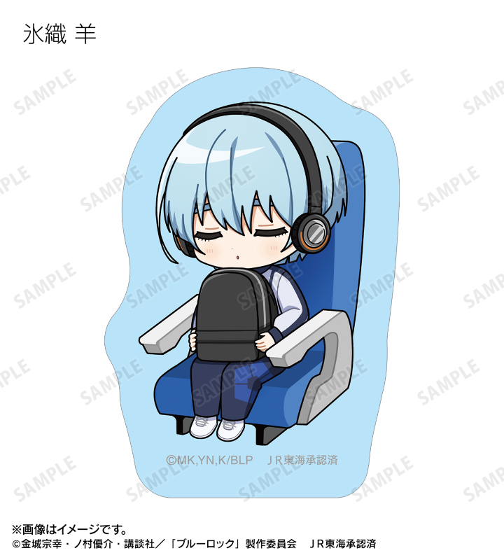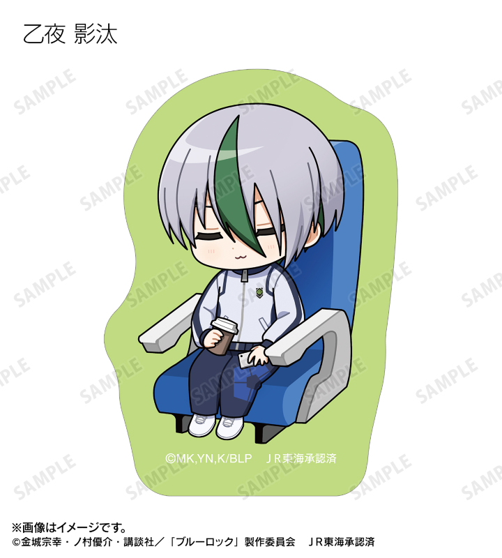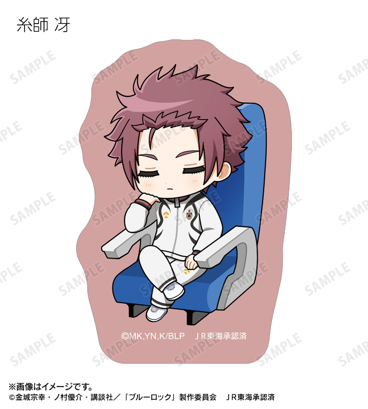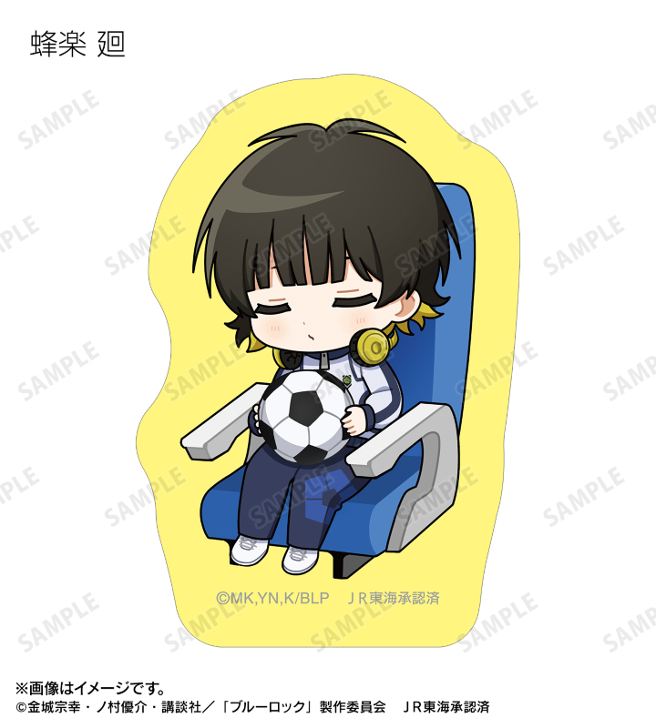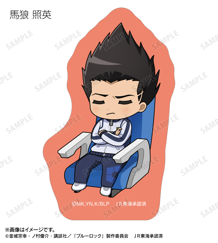 TVアニメ『ブルーロック』×「推し旅/JR東海」のコラボレーションアイテム「ちびキャラ 新幹線でうたたねver. フレークシール」の登場です。