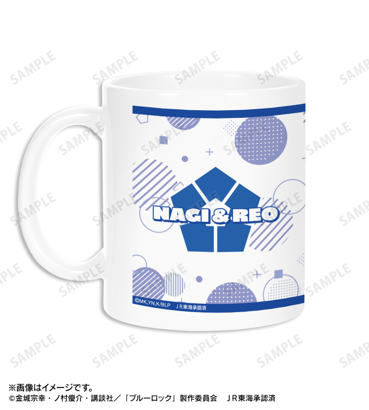 凪 誠士郎、御影 玲王の描き起こしちびキャライラストをメインにデザインし、マグカップに仕上げました。