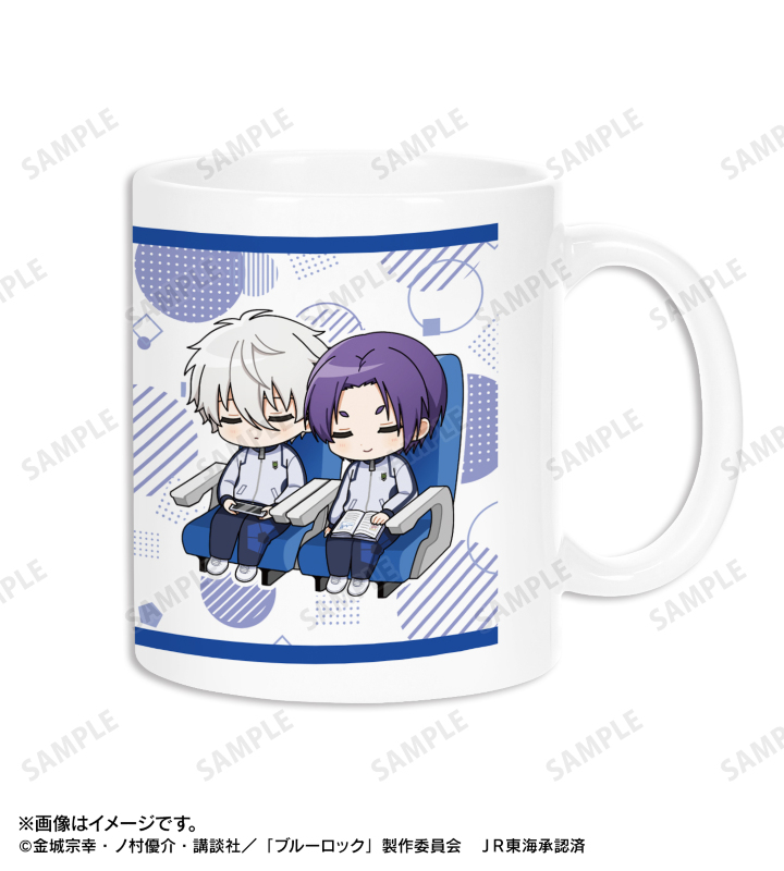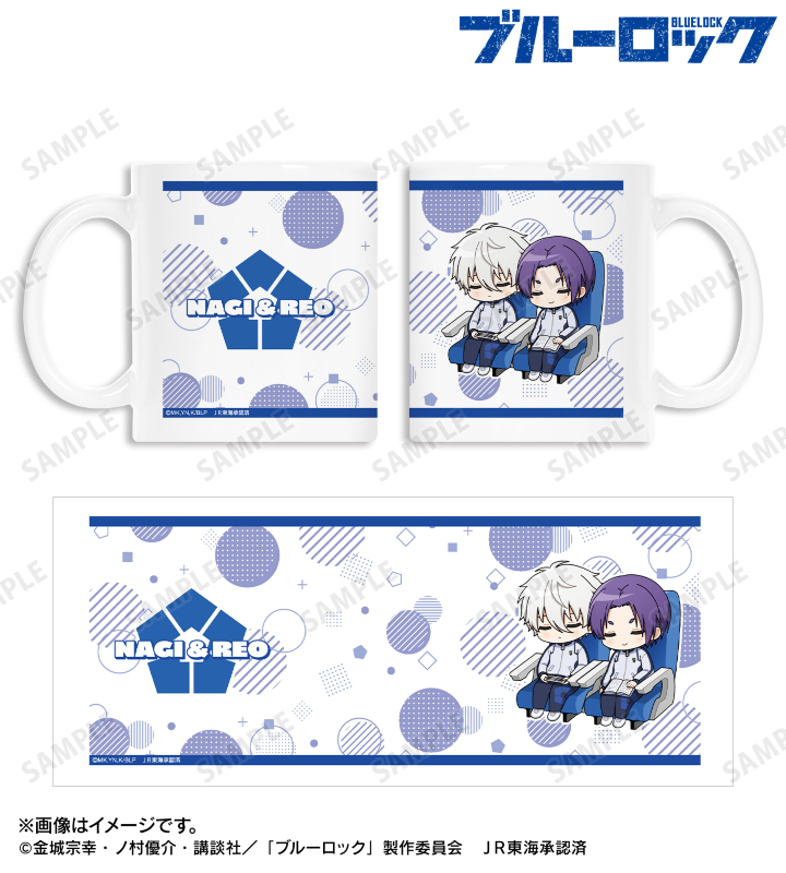 TVアニメ『ブルーロック』×「推し旅/JR東海」のコラボレーションアイテム「凪 誠士郎&御影 玲王 ちびキャラ 新幹線でうたたねver. マグカップ」の登場です。