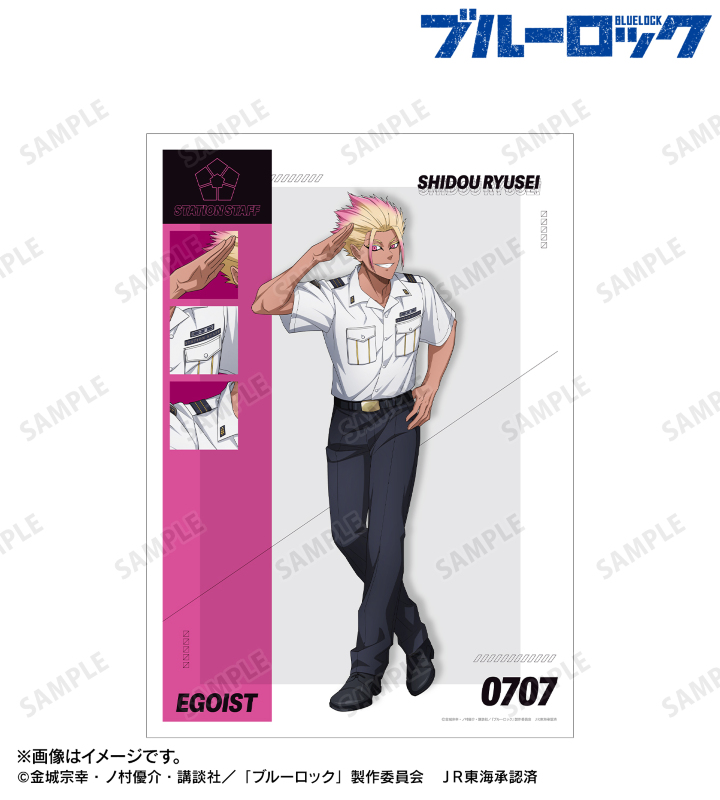 TVアニメ『ブルーロック』×「推し旅/JR東海」のコラボレーションアイテム「描き下ろし 士道 龍聖 駅員ver. A3マット加工ポスター」の登場です。