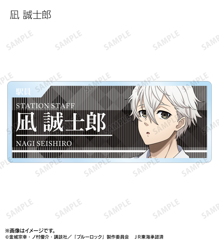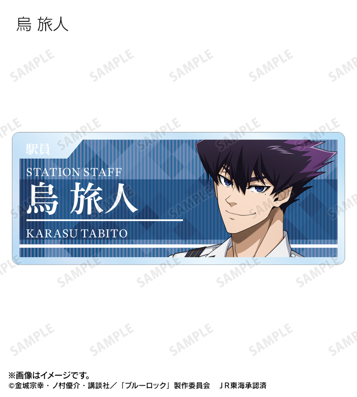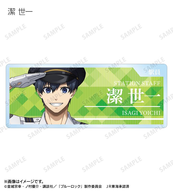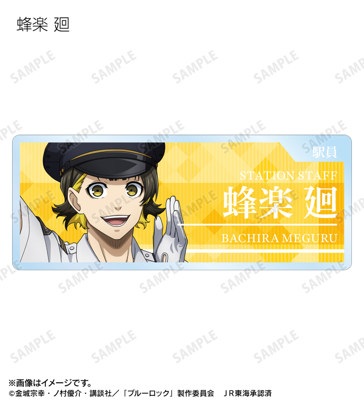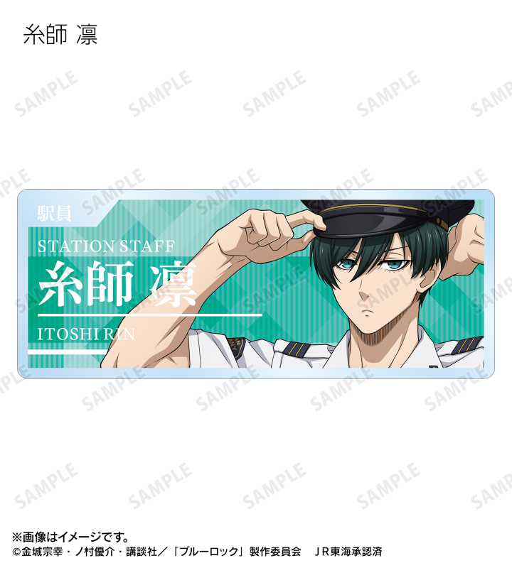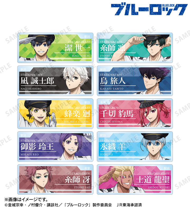 TVアニメ『ブルーロック』×「推し旅/JR東海」のコラボレーションアイテム「描き下ろし 駅員ver. トレーディングアクリルネームプレート」の登場です。
