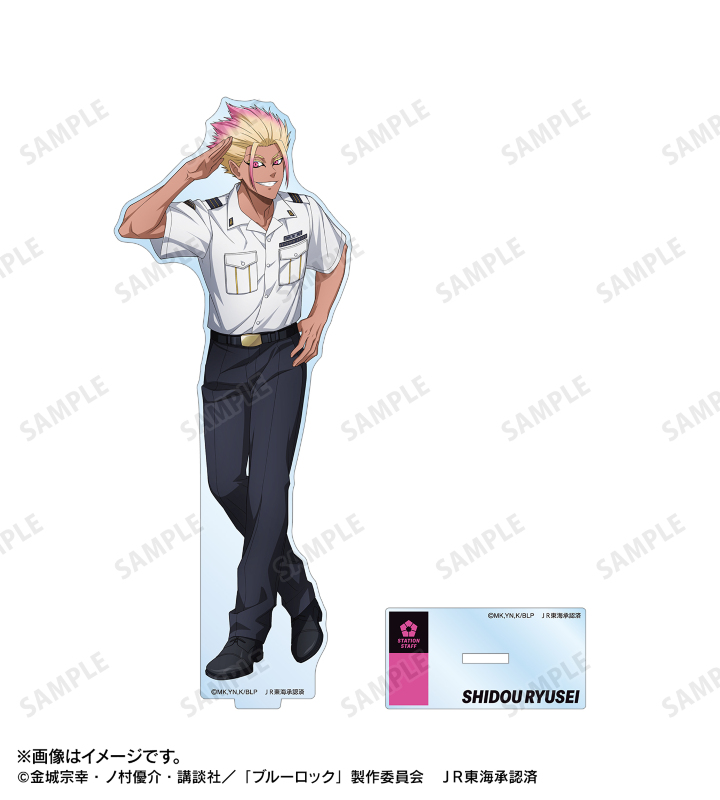 TVアニメ『ブルーロック』×「推し旅/JR東海」のコラボレーションアイテム「描き下ろし 士道 龍聖 駅員ver. BIGアクリルスタンド」の登場です。