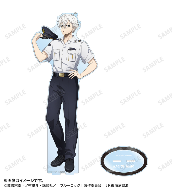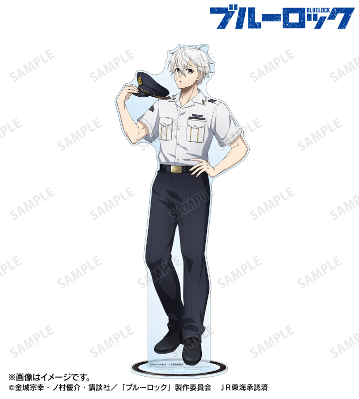 TVアニメ『ブルーロック』×「推し旅/JR東海」のコラボレーションアイテム「描き下ろし 凪 誠士郎 駅員ver. 特大アクリルスタンド」の登場です。