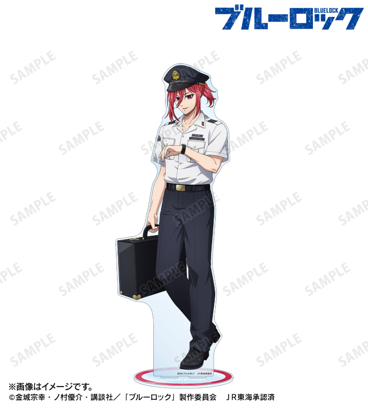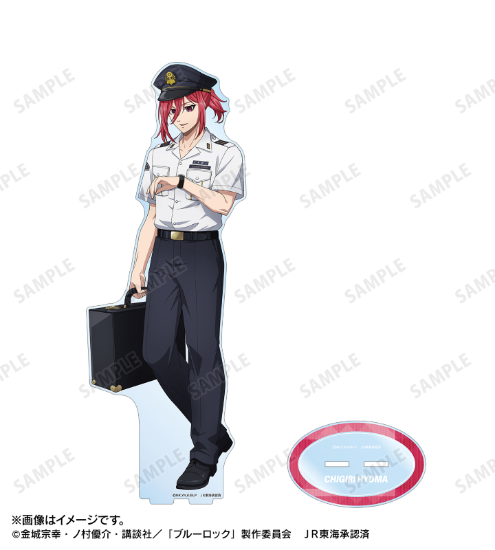 TVアニメ『ブルーロック』×「推し旅/JR東海」のコラボレーションアイテム「描き下ろし 千切 豹馬 駅員ver. 特大アクリルスタンド」の登場です。