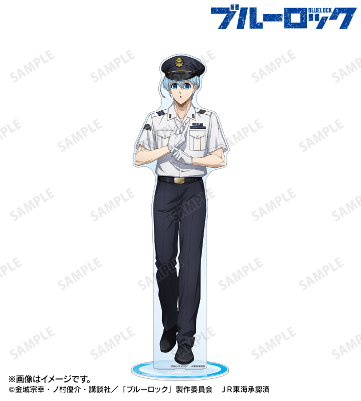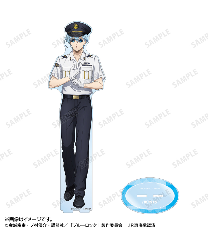 TVアニメ『ブルーロック』×「推し旅/JR東海」のコラボレーションアイテム「描き下ろし 氷織 羊 駅員ver. 特大アクリルスタンド」の登場です。