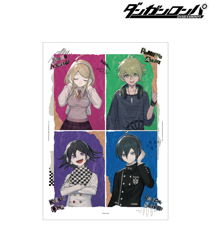 lackさん描き下ろしイラストの赤松 楓、天海 蘭太郎、王馬 小吉、最原 終一をA3サイズのマット加工されたポスターに仕上げました。