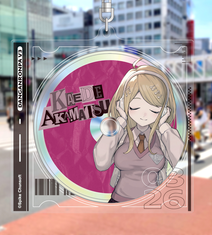 『ダンガンロンパシリーズ』×「lack」のコラボレーションアイテム「lackさんイラスト 赤松 楓 ヘッドフォンver. BIGアクリルキーホルダー」の登場です。