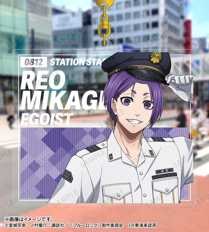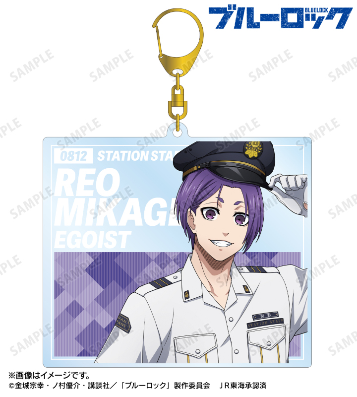 TVアニメ『ブルーロック』×「推し旅/JR東海」のコラボレーションアイテム「描き下ろし 御影 玲王 駅員ver. BIGアクリルキーホルダー」の登場です。