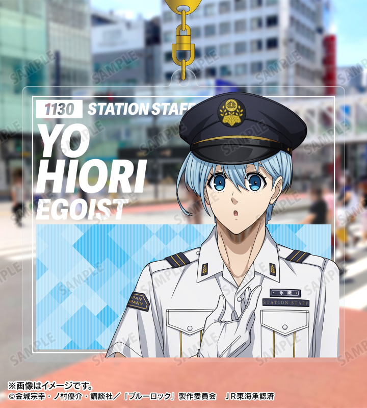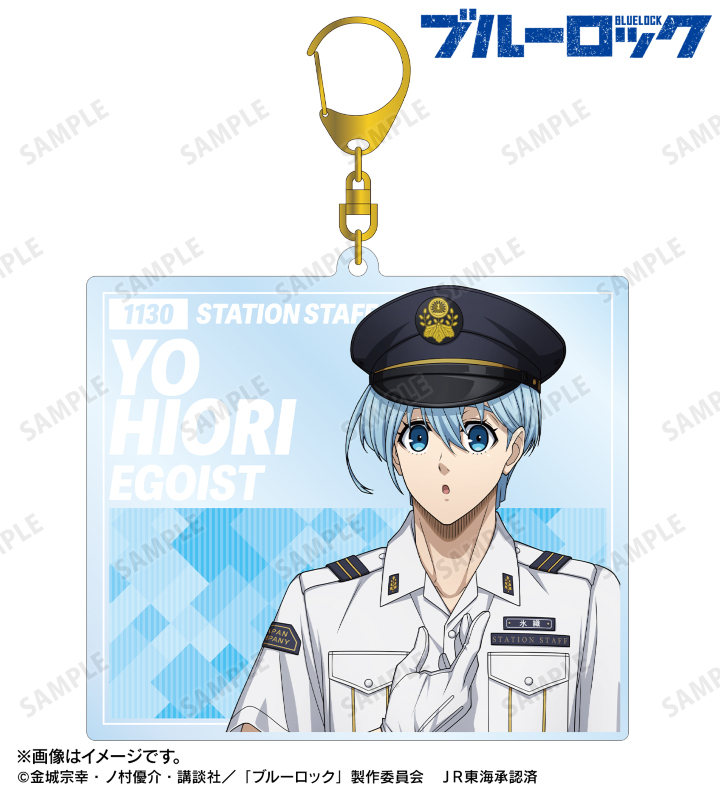 TVアニメ『ブルーロック』×「推し旅/JR東海」のコラボレーションアイテム「描き下ろし 氷織 羊 駅員ver. BIGアクリルキーホルダー」の登場です。