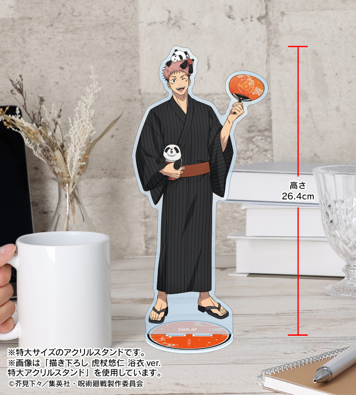 TVアニメ「呪術廻戦」×「浅草花やしき」のコラボレーションアイテム「描き下ろし 五条 悟 浴衣ver. 特大アクリルスタンド」の登場です。