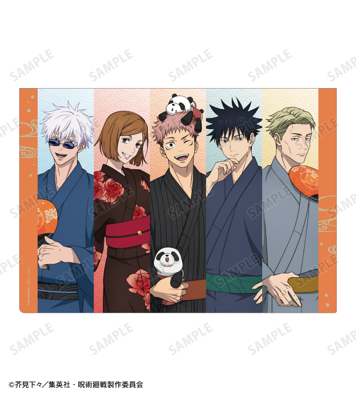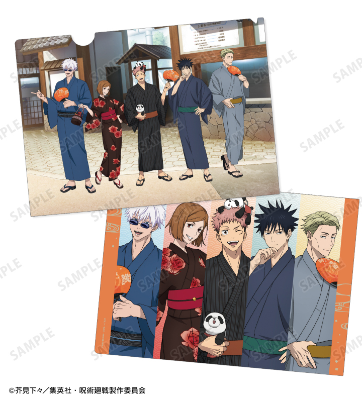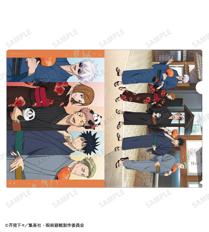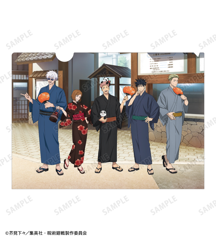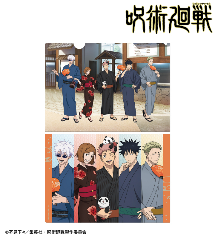 TVアニメ「呪術廻戦」×「浅草花やしき」のコラボレーションアイテム「描き下ろし 集合 浴衣ver. クリアファイル」の登場です。