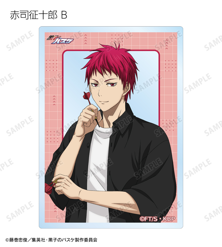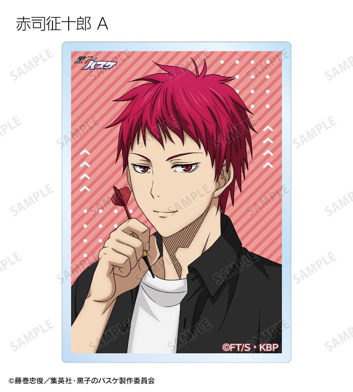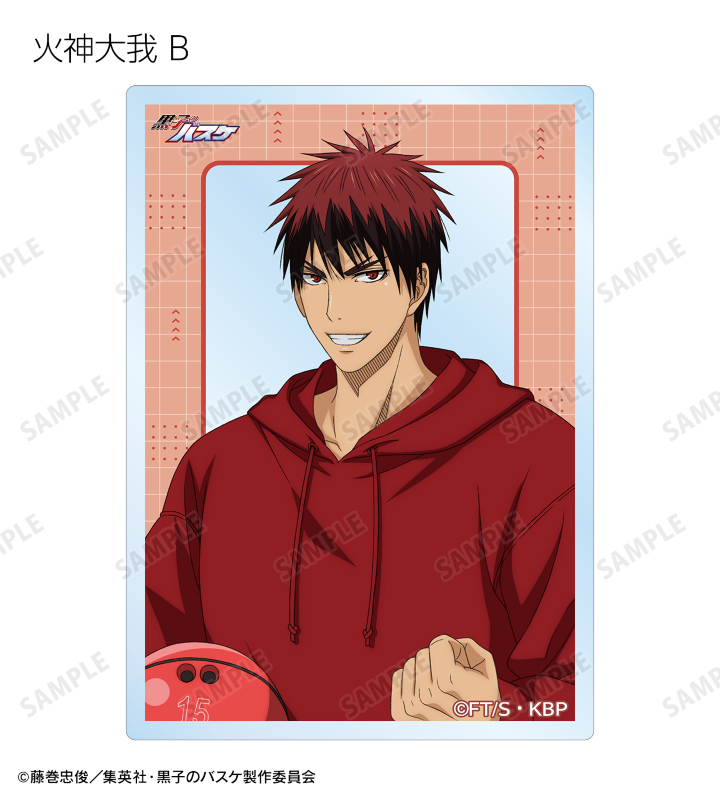 黒子テツヤ、火神大我、黄瀬涼太、緑間真太郎、青峰大輝、紫原 敦、赤司征十郎の描き下ろしイラストをアクリルカードに仕上げました。