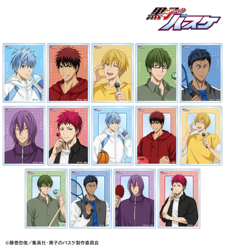 『黒子のバスケ』×「ROUND1」のコラボレーションアイテム「描き下ろし スポーツホリデーver. トレーディングアクリルカード」の登場です。