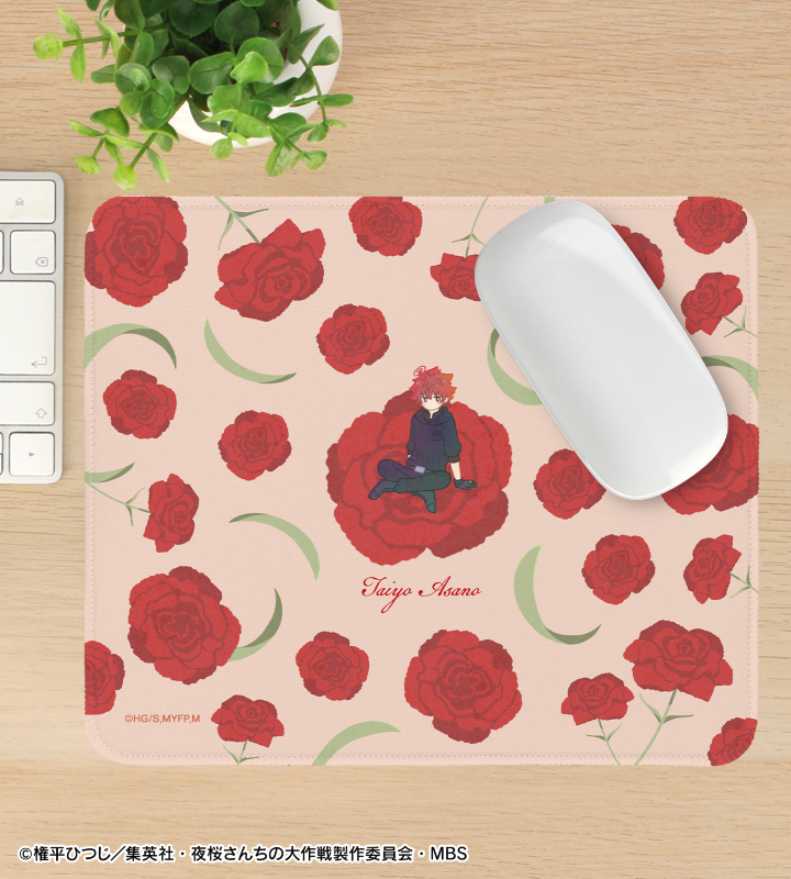 TVアニメ『夜桜さんちの大作戦』からオフィスアイテムをテーマにしたデザインライン「ar-Unity」のアイテム「朝野太陽 Botania マウスパッド」の登場です。