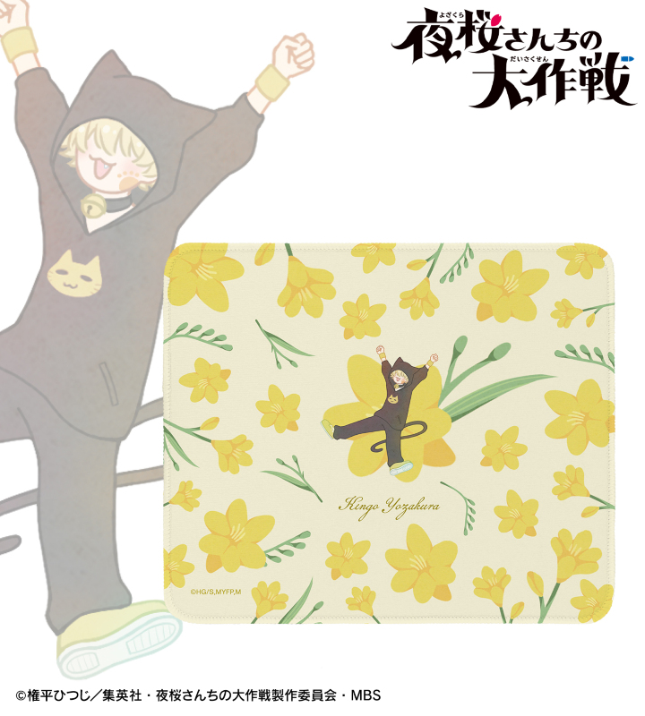 TVアニメ『夜桜さんちの大作戦』からオフィスアイテムをテーマにしたデザインライン「ar-Unity」のアイテム「夜桜嫌五 Botania マウスパッド」の登場です。