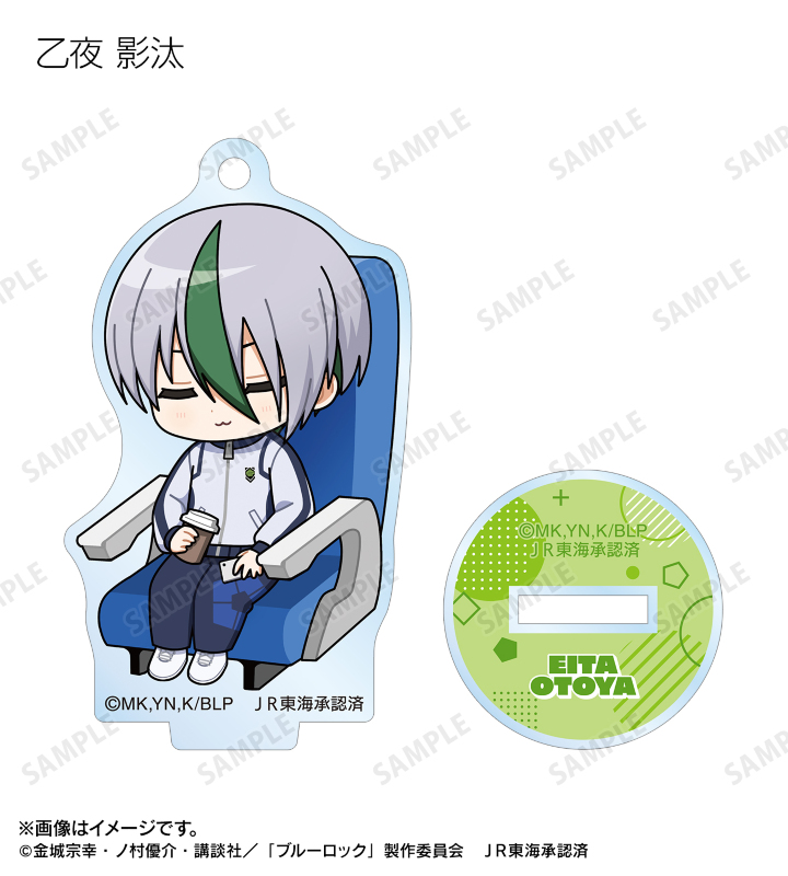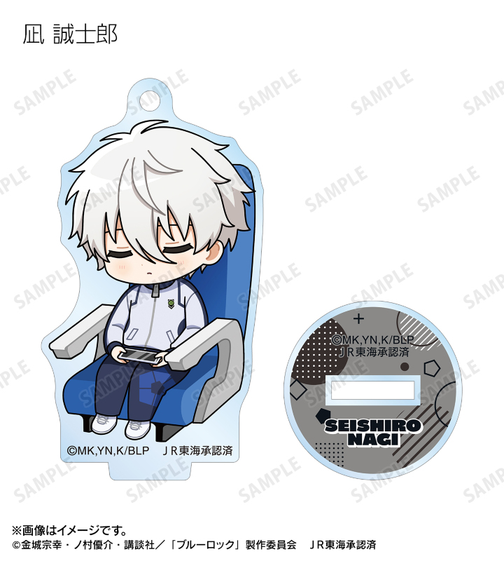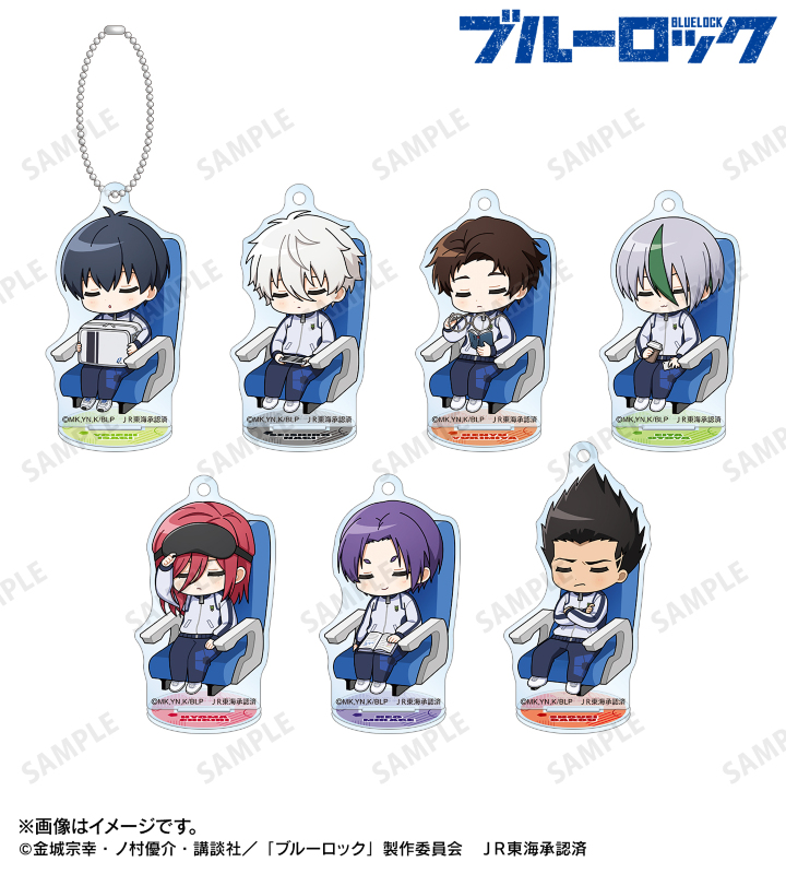 TVアニメ『ブルーロック』×「推し旅/JR東海」のコラボレーションアイテム「トレーディング ちびキャラ 新幹線でうたたねver. アクリルスタンドキーホルダー ver.A」の登場です。