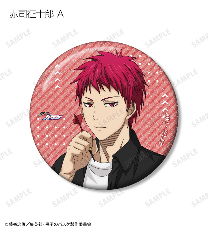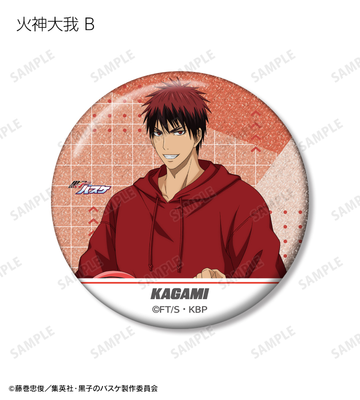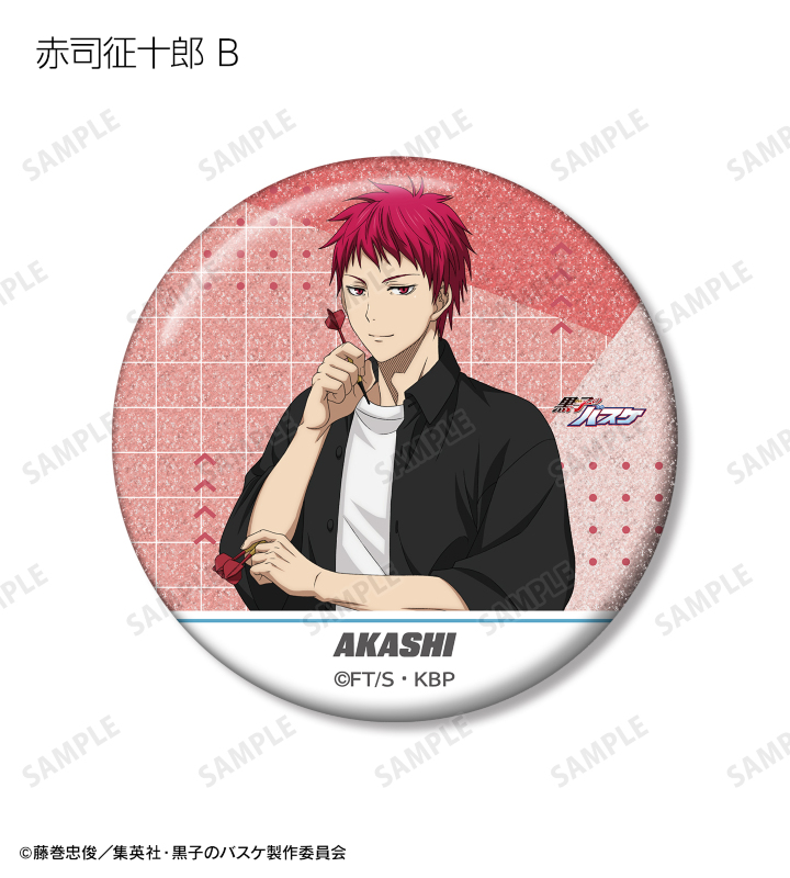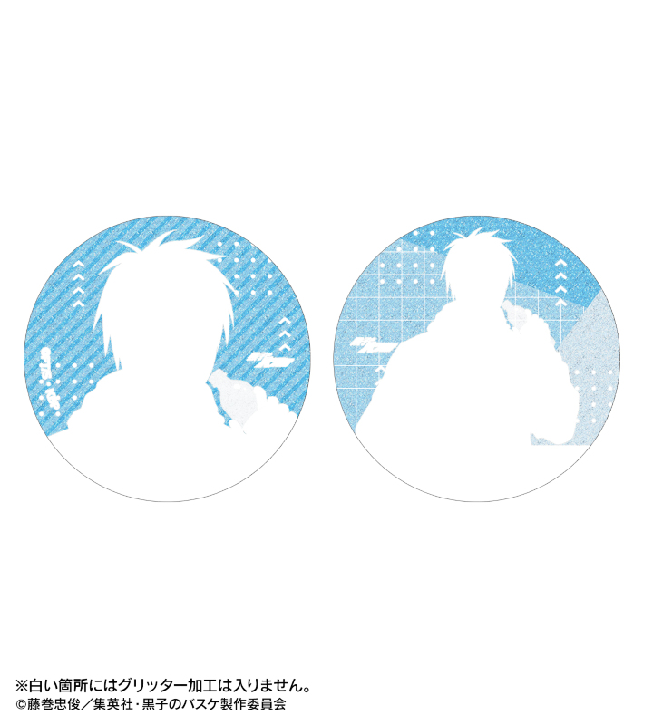 黒子テツヤ、火神大我、黄瀬涼太、緑間真太郎、青峰大輝、紫原 敦、赤司征十郎の描き下ろしイラストをグリッター加工を施した缶バッジに仕上げました。 ※2025年11月26日までに